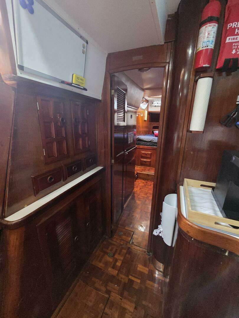 - The forward crew quarter is used as a work/storage room (could be converted back into a fourth cabin)