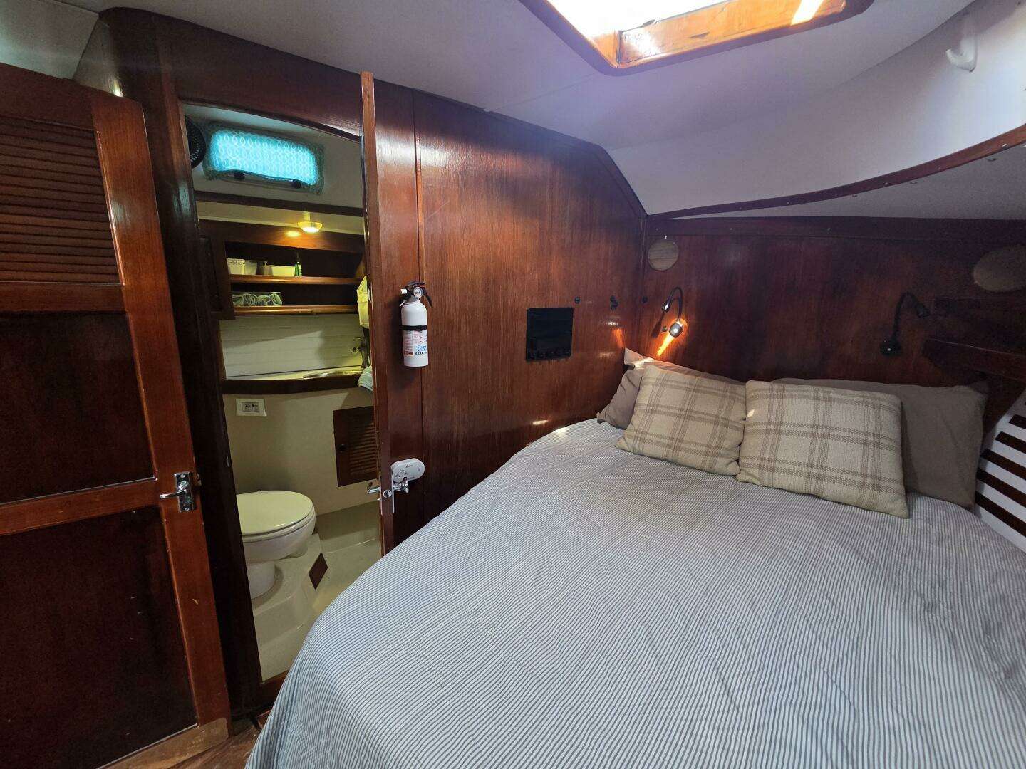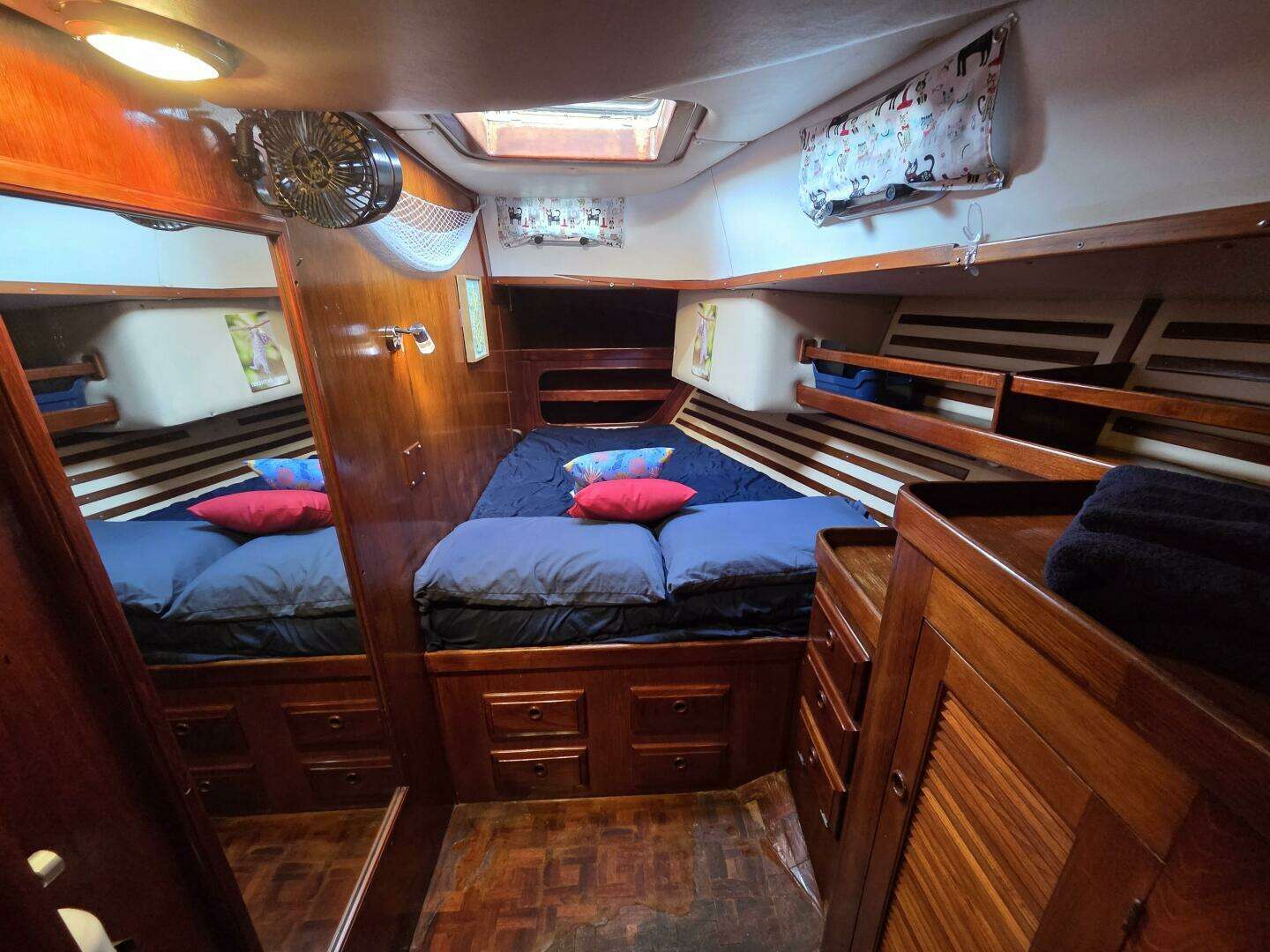 - Crew/Storage Cabin: A door through the shower leads to this cabin, which contains a bunk and is currently used for storage with many cruising extras and spare parts (all included in the sale).
