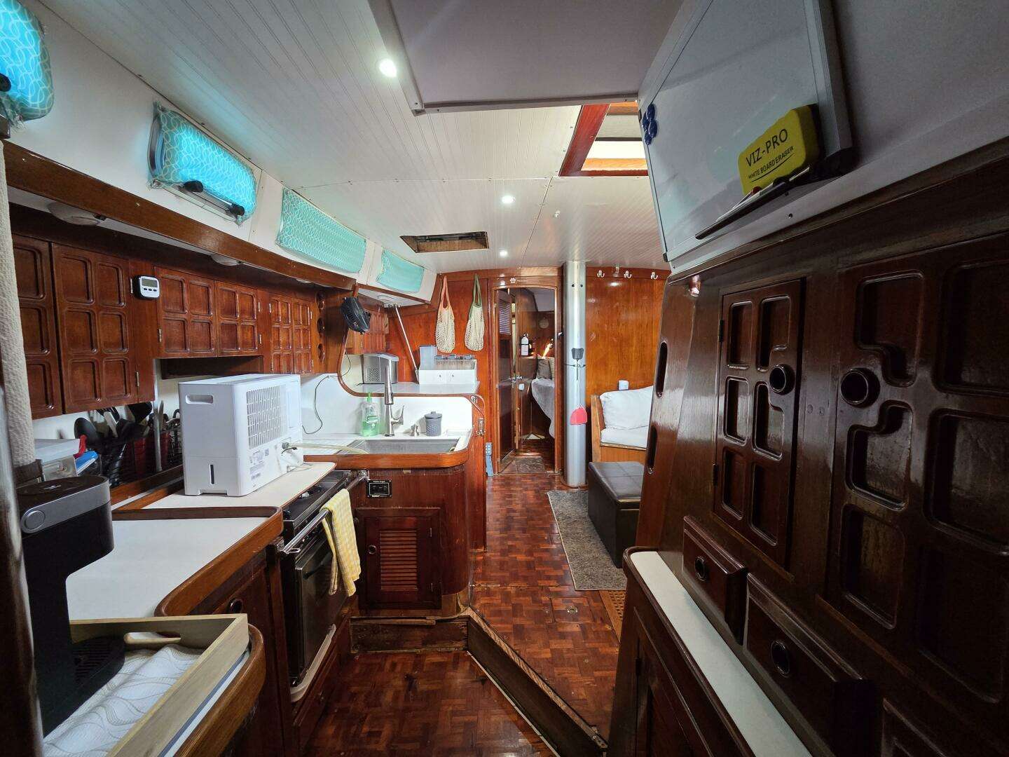 - Galley: A very large galley area is situated to port of the companionway and salon with a huge amount of counter space and plentiful storage.