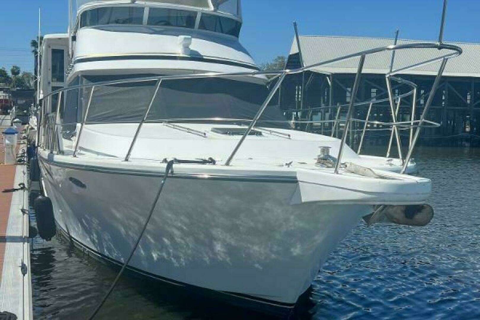 51' HYATT AFT CABIN MOTORYACHT WITH TONS OF LIVING & STORAGE SPACE. SALON-LEVEL GALLEY WITH AN ABUNDANCE OF STORAGE. INTERIOR WOODWORK & FLOORING ARE IN GREAT CONDITION! ENCLOSED AREAS ARE AIR CONDITIONED, INCLUDING THE AFT DECK & FLYBRIDGE! DETAILED ENGINE ROOM, NEW GENERATOR & ELECTRONICS.