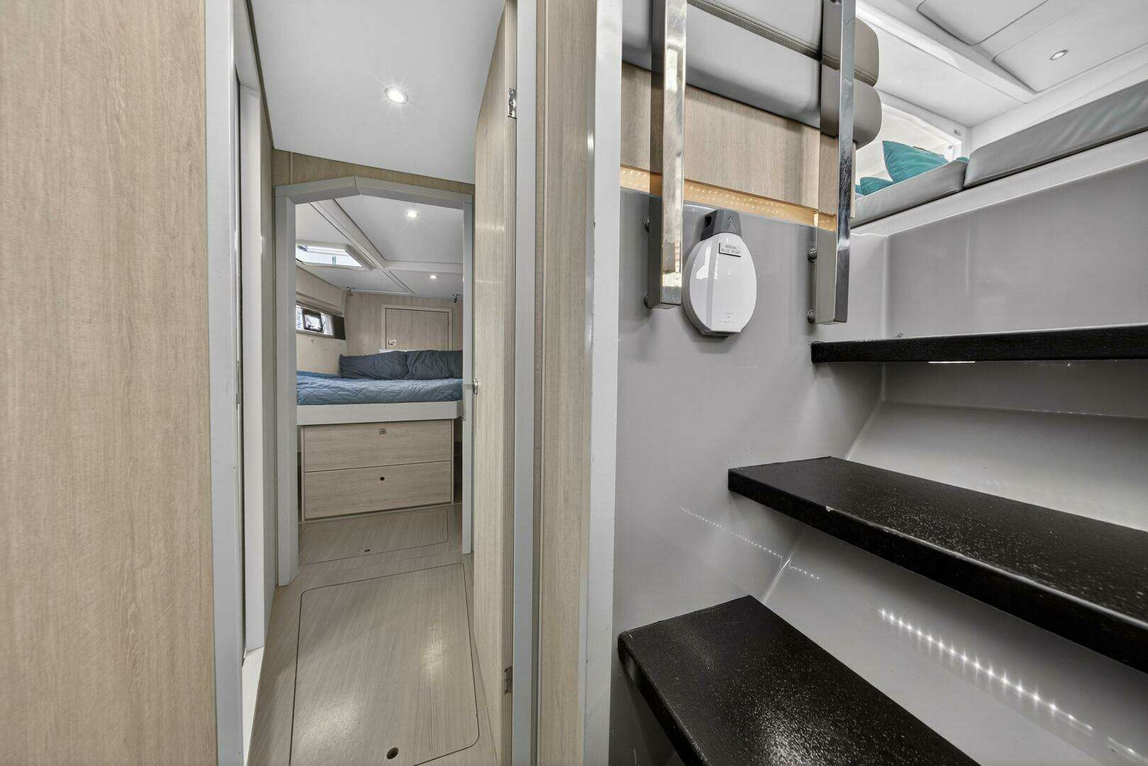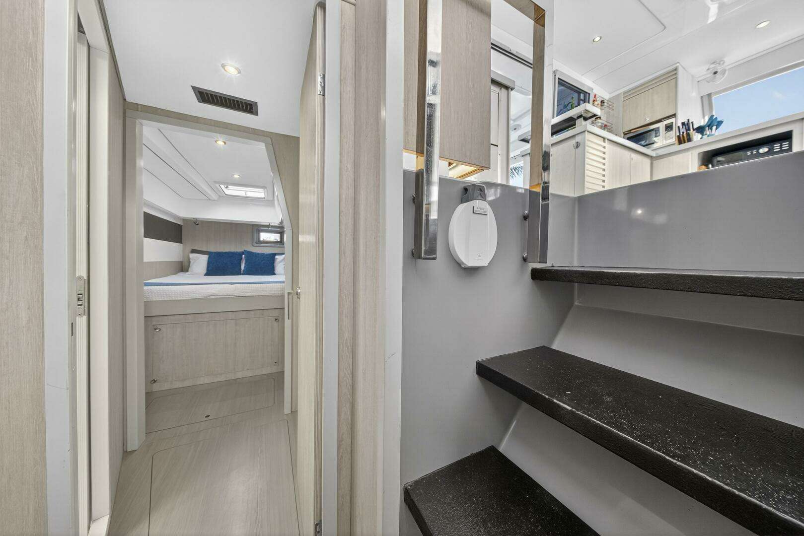 - Victron Quattro 12/5000/220 Inverter / charger. (new 2024) (runs all 3 air conditioners). All electrical installed by Just Catamarans.