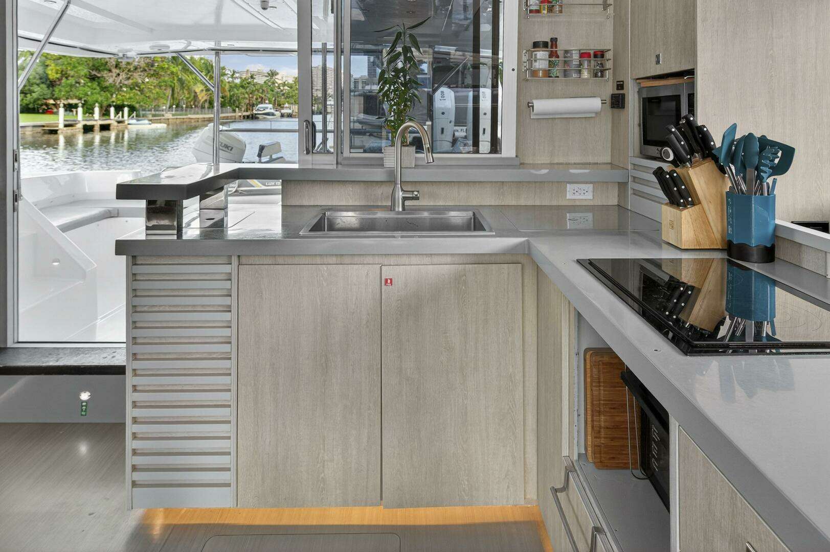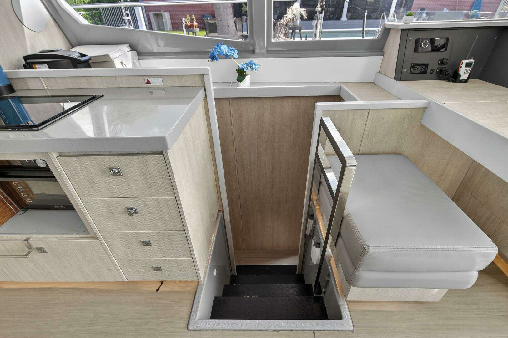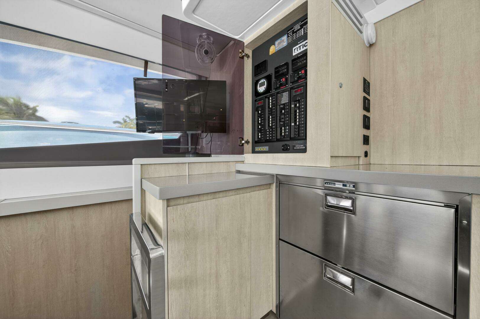 - Flybridge galley with sink, refrigerator. (new 2024)