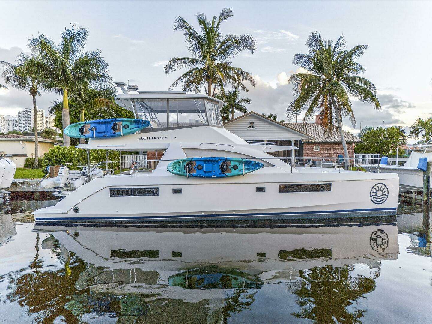 Southern Sky is a 2018 Leopard 51 Power Catamaran that offers the perfect balance of performance, luxury, and efficiency, making it an exceptional choice for charter, cruising, or liveaboard adventures. Powered by twin diesel engines, it delivers impressive fuel economy and a smooth ride, even in open water. The spacious layout includes four comfortable cabins with en-suite heads, a modern galley, and a bright, open salon with panoramic windows. The expansive flybridge features ample seating, a wet bar, and a helm station with excellent visibility, making it ideal for entertaining or relaxing underway. With its solid build, sleek design, and proven cruising capabilities, this Leopard 51PC is turn-key and ready for your next voyage.