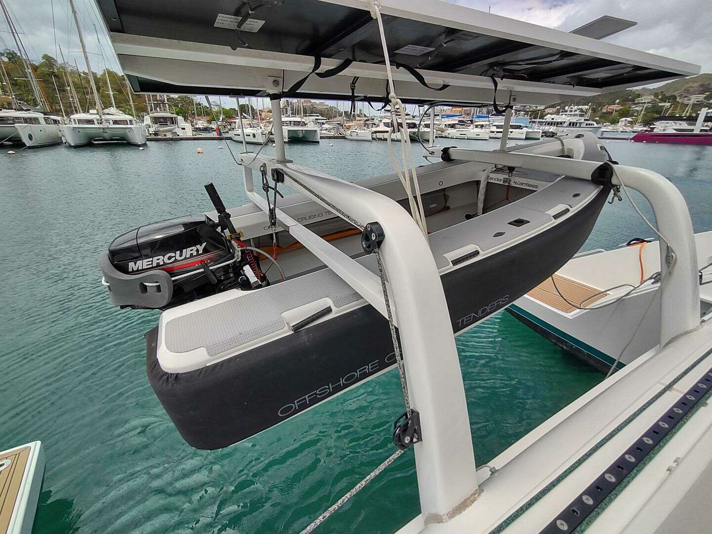 - Upgraded Outremer 5X carbon fiber dinghy davits
