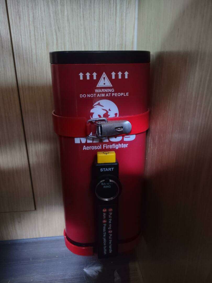 - (3) small and one large Maus aerosol fire extinguishers
