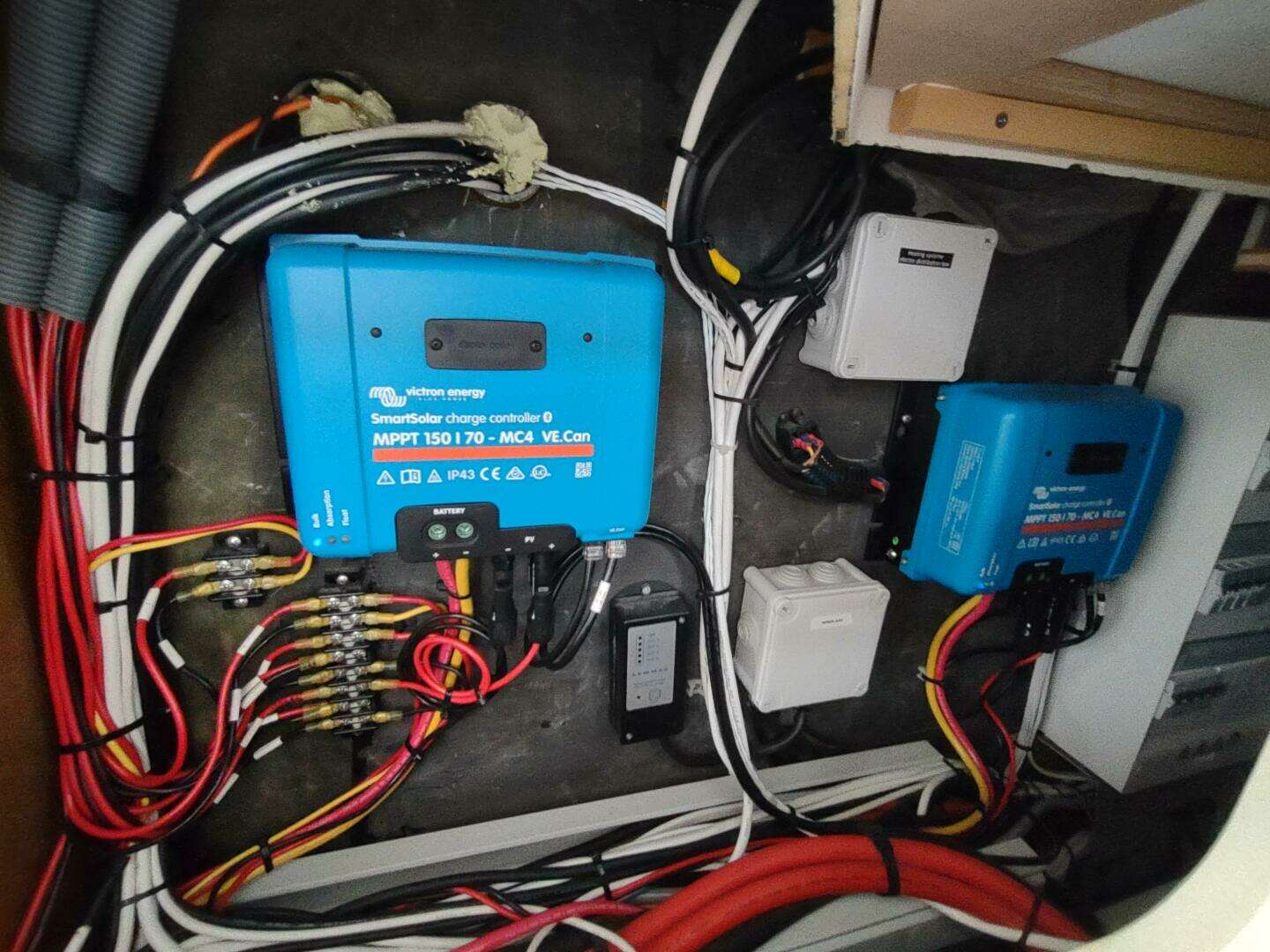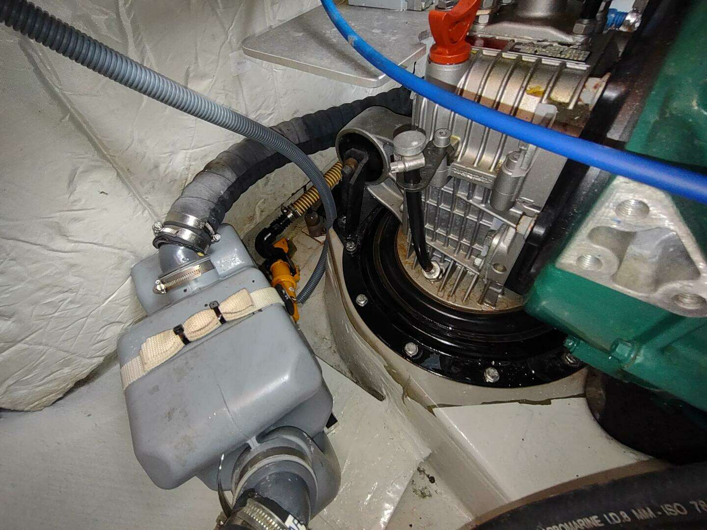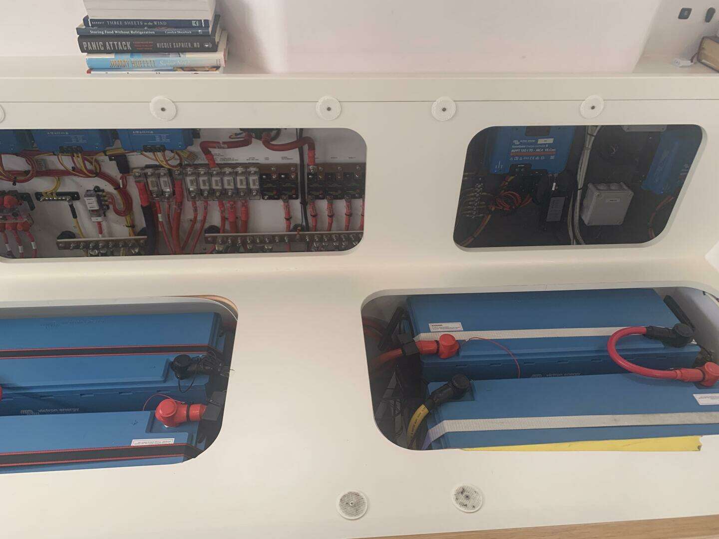 For efficiency, in addition to the extra solar capacity we opted for the Integrel Generator system. This simple port-engine-mounted generator produces up to 5.5 kW while motoring and more than 6 kW when running at anchor. The system provides two major benefits: first, we eliminated propane entirely from the boat, improving safety; second, we never have to search for propane or deal with changing tanks and adaptors when cruising internationally. With our solar panels and typical short motoring in and out of anchorages, we can often go about a week before running the Integrel system to top up the batteries.