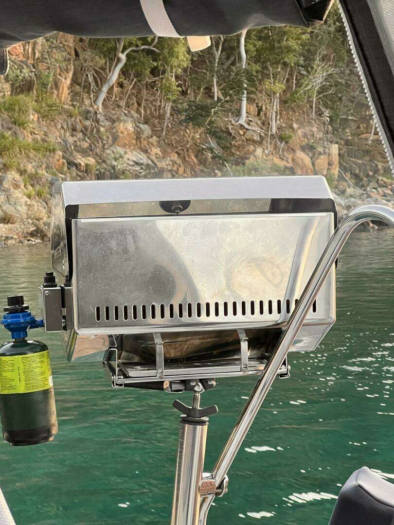 - Magma Infrared stainless steel barbeque grill – mounts in rod holder on stern