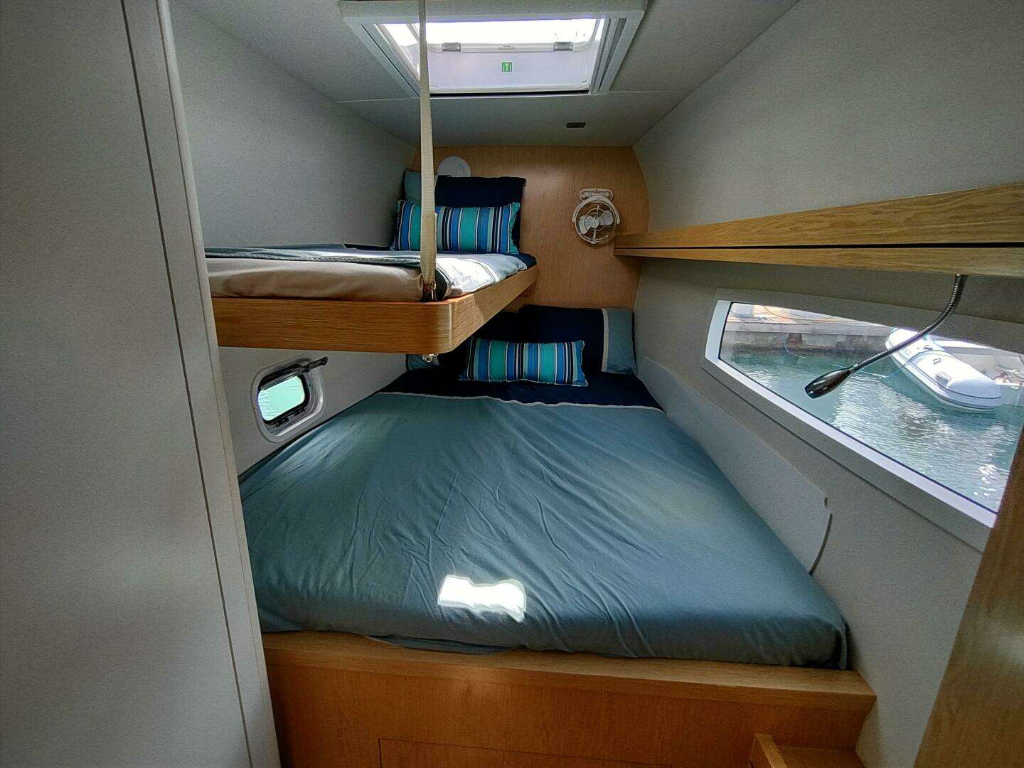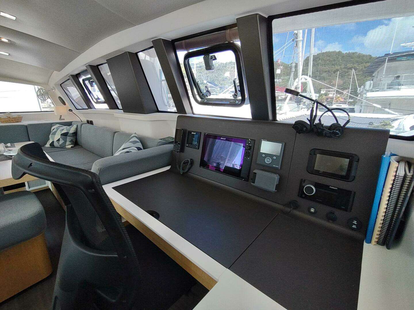 - Fusion stereo with (4) 6” round speakers in salon and cockpit