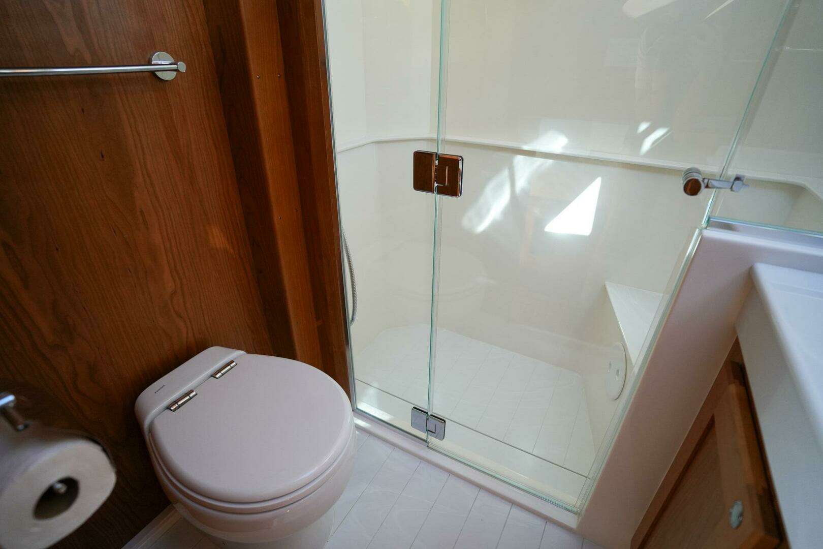 • Spacious island berth, with 6″ mattress and laminated trim.