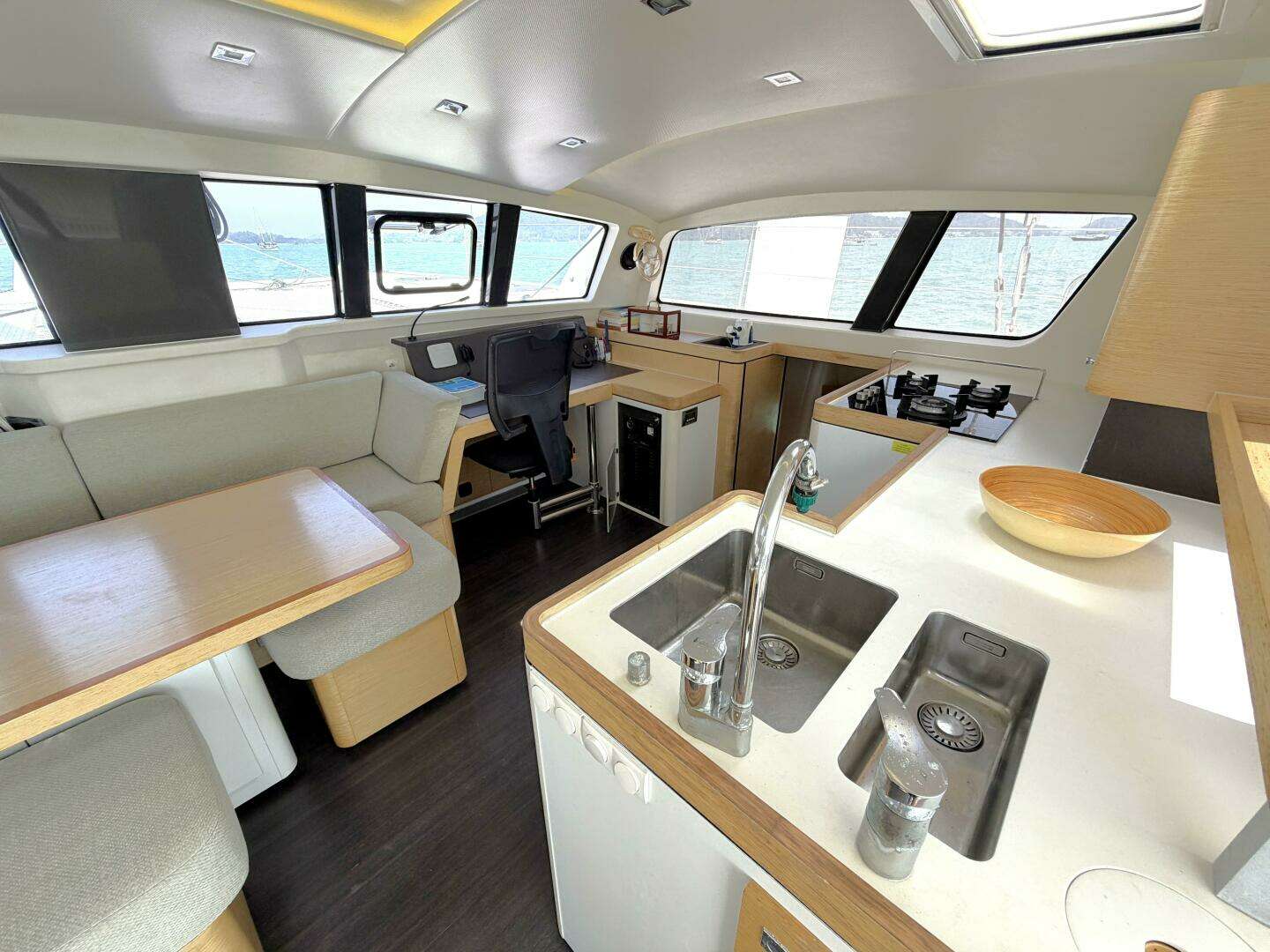 Her 4-cabin layout offers spacious near-Queen beds in the aft cabins of the hulls with a separate head and shower on the starboard side, plus a combined head on port, maximising space and comfort for family or crew. Full boat air conditioning keeps Mariposa cool in the tropics, while opening front windows along the saloon allow cool breezes for a silent and comfortable boat.