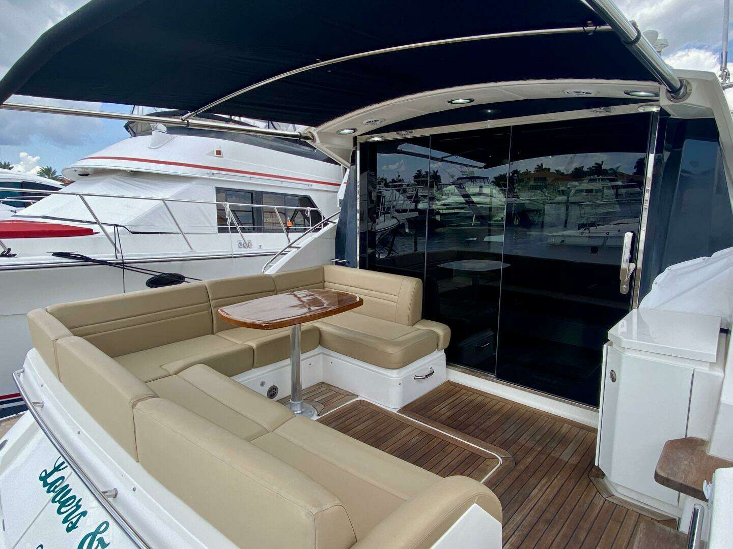 - Bench Settee with High-Gloss Teak Table on Cockpit