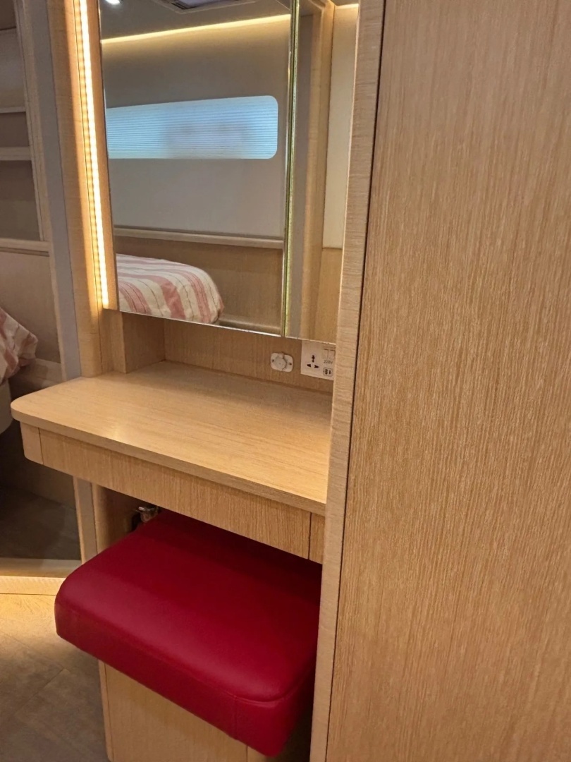 - Lightweight interior. All panels are lightweight foam cored construction with gloss gelcoat or wood laminate surface