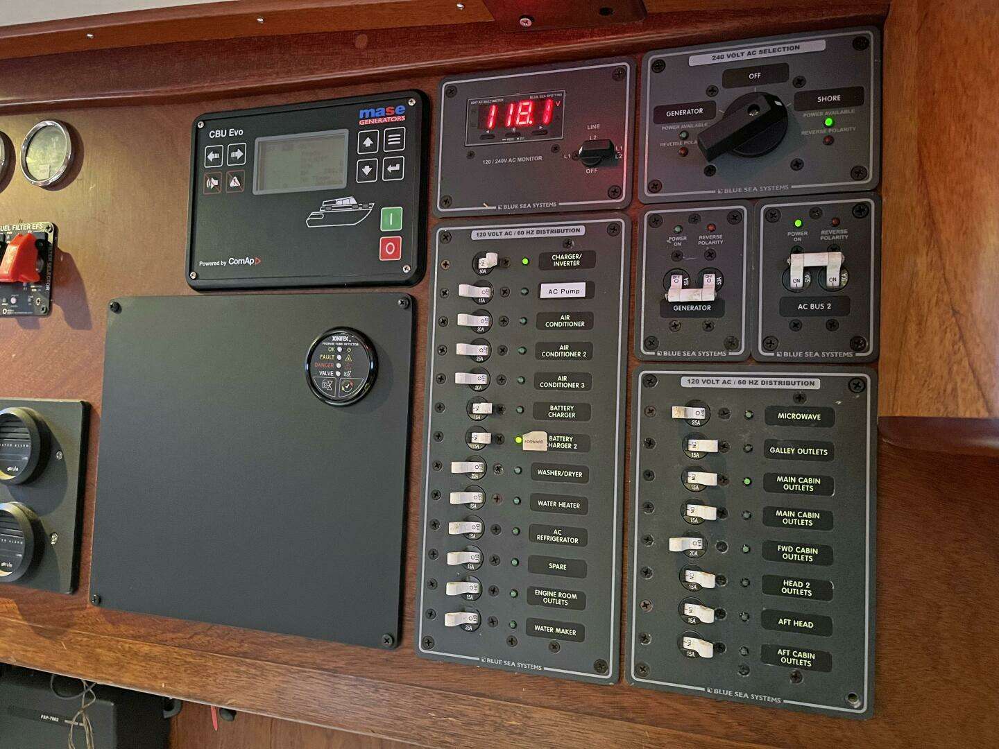 Blue Sea Systems AC and DC distribution panels with AC and DC digital voltmeters