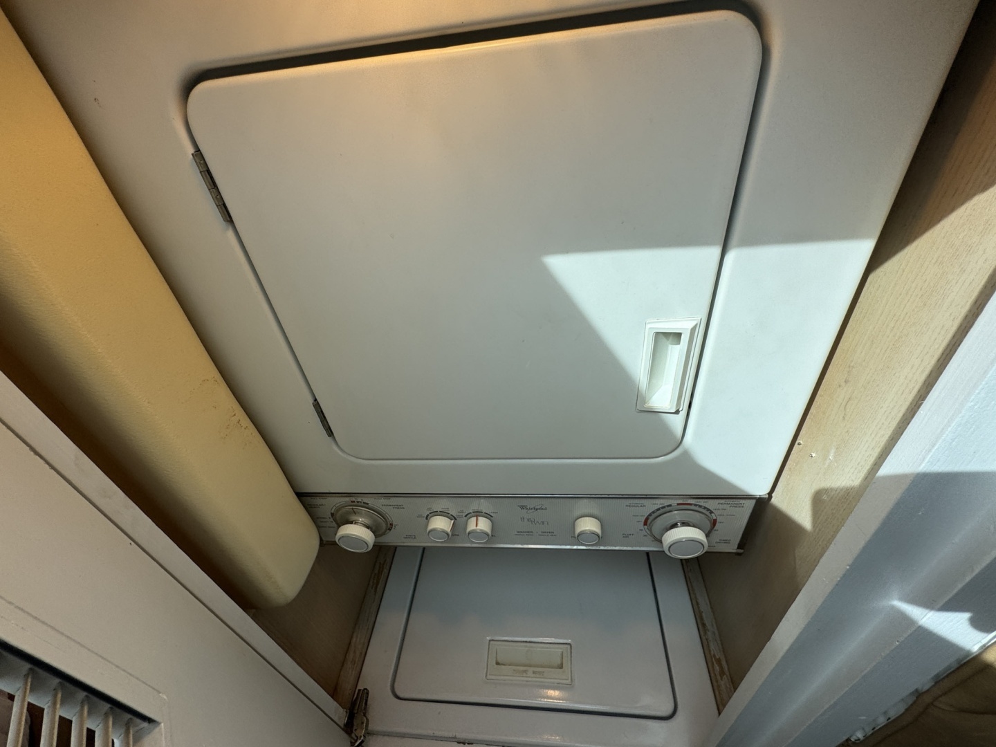 - Whirlpool stacked separate washer and dryer (In the forward companionway)