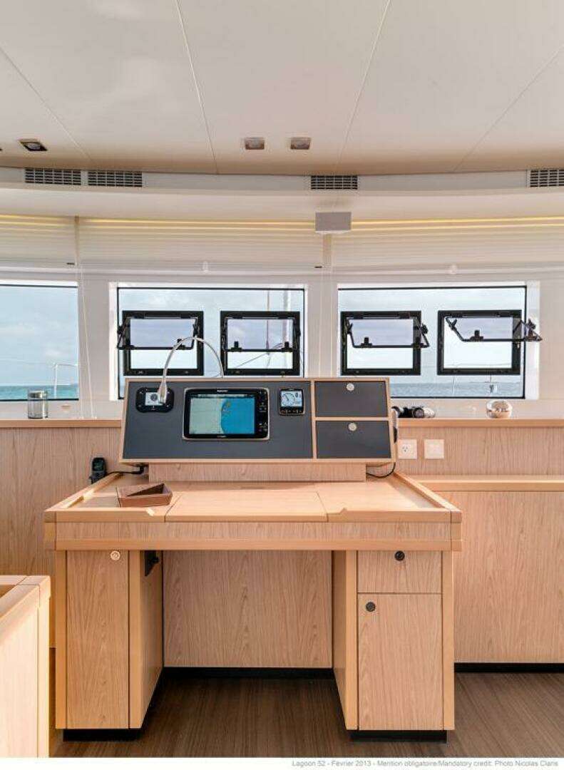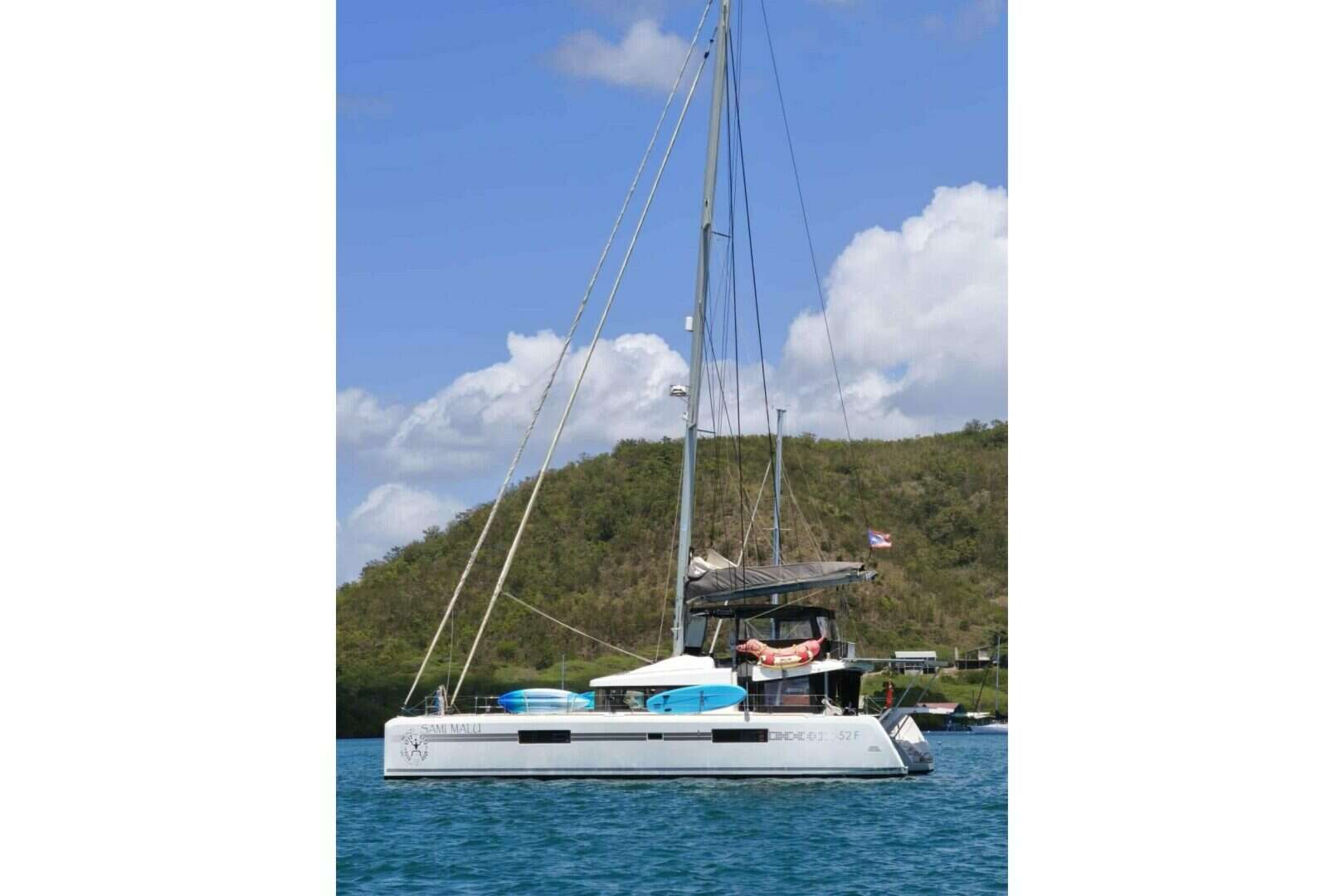 Brand New To The Market!Arriving in Fort Lauderdale October 10. .With her diamond-shaped vertical bows, bevelled hulls and tall rig, Sami Malu goes a great deal further than just her outer appearance and her interior layout. Sami Malu is a beautiful 2017 4-cabin Lagoon 52. Perhaps one of the most impressive solar upgrades ever installed on a L52, Sami Malu's 4,530 watts of Solar were installed on custom fabricated stainnless structure in 2023. Although she is equipped with a very impressive Cummins Onan 17KW generator, her solar alone enables her to be a completely off-grid boat. ADDITIONAL OPTIONS AND RECENT UPGRADES Solar Power on Steroids with 4,530 WATTS! Lithium Batteries Victron Energy system controller New helm throttle Controller (Dec 2023) New Canvas and Isenglass enclosures: Flybridge and cockpit (Jan 2025) New Lazy bag with cover (2023) New Sunstrip UV protection on Code 0 (2023) New Salon interior couch cushion covers (2023) New ATN Supertramp trampoline (2023) New Anchor chain-250ft (2023) New 42 Smart TV in Master, and new 32 Smart TV in Salon (2023) New JBL Sound Bar with Sub woofer (2023) New Denon Home Theater system (2023) New LED lighting throughout cockpit and salon (2025)Comfort Equipment Configuration Helm seat cushions Storage unit in starboard cockpit furniture Deck wash pump: fresh/salt fresh water dock inlet 220V Electrical Circuit AC Monitoring Opening hatches and curtains on aft portholes of aft cabins Leather bulkhead organizers in cabins Denon Home Theater system with Bose speakers in Salon, cockpit and Fly Windlass Remote control with chain counter at fly-bridge Indirect Lighting in cabins and salonElectrical, Power & Plumbing Aquamatic Watermaker-80 gallons/hour! Underwater Ocean LED lights Bow Thruster 24V w/new battery+charger Quattros charging at 200ah each Freshwater Electric Toilets Air Conditioning-Reverse cycle water chilled 60,000BTU 220V Holding tanks + WC electric fresh waterDeck 11 mooring cleats Harken deck gear. 1 double purchase spectra mainsail halyard 1 spectra Genoa halyard with tension adjustment track at mast base 3 reefing lines, rigged Main traveller adjustment next to port side winches Lazy bag with cover Bow pulpits with acrylic seating (2025) Large Bimini at Helm station with windscreen, full enclosure w/doors (2025) Hydraulic Aluminum Davit system Aft bench Seating with custom cushions (2023) Full enclosure-Sun Shades Hot/Cold freshwater shower on sugar scoop Swim ladder with hot and cold shower Aft cockpit cushions Cockpit sides and Aft-Sun Canvas with windows Grey sun-lounging pads on fly-bridge Grey forward cockpit cushionsCockpit Teak Decking and on sugar scoops U shaped bench to starboard. Propane storage locker Removable teak cockpit table, interchangeable with inside table. Table storage unit in ceiling. Storage along starboard side of cockpit Countertop Ice maker Cockpit Fridge (80L) Storage/Bar along port side of cockpit: Sink, countertop, two door storage locker Pass-through window to salon via sliding window Access to flybridge via port side cockpit. Access to port stern cabin from cockpit. Cabin closed with gull-wing door on new hydraulic struts 1 Lazy boy with storage unit in base. All new LED lightingInterior Light Alpi Oak with Milano Flooring Grey upholstery in Salon Queen beds in all 4 cabins Curtains on all salon windows blinds on all cabin windowsGalley Vast panoramic galley - headroom: 2.15m Large salon dining table interchangeable with small cockpit table Aluminium sliding door with lock provides access to cockpit 4 floor lockers in salon 4 opening port hatches Wooden gunwale with storage on port side Domestic size Fridge/Freezer in starboard passageway Two-drawer fridge freezer Gas Oven 4-burner stove Microwave Miele Dishwasher Fully outfitted: Breadmaker, coffee machine, blender, icemaker, and many other appliancesEngines and Mechanical Yanmar 4JH80 1780 +1810 hours Cummins Onan 17KW Generator-3400 hours 3-blade folding propsElectronics and Navigation B&G Zues 16" chartplotter and autopilot at Helm B&G 400 Tranceiver with antenna coupling B&G wifi module lifestyle B&G Radar with Stainless protection B&G double handset with DSC 1 43 touch screen controls: lighting, battery level, fuel gages, water, navigation lights DVD/TV 32' TV Cinema Screen dropdown in Salon B&G Zues Chartplotter and autopilotElectrical 2x Victron Quattro 5KW Inverters-200ah charging each Victron Energy monitoring (w/bluetooth) 220V Electrical systems, AC monitoring 6x 300ah Lithium batteries 12V 80ah alternator. 12V 48ah starter batterySolar Power-4.2KW 2,925 Watts (5x 585w Panels) on a custom Aluminium Frame Solar arch provides additional sun protection for tender and rear section of cockpit 585 W-Portable solar panel Additional 1,020 Flexible Solar panels (6 x170w) All Solar connected to Victron MPPTs monitoring system.Flybridge Access via stairway on port side of cockpit and directly from the starboard or port side of bridge. Central console with handrail, electronic receiver, electronic engine controls, windlass control Large Bimini on helm station with new LED lights, All lines led to forward section of flybridge to 4 electric winches. 3 Line storage bins Seat on starboard side with storage. Sun bathing area to rear of flybridge Helmsman seating 1 mainsail and genoa electric winch to rear of flybridge. Full enclosure Isenglass w/doors (2025)Sails Fully-battened Hydranet tri-radial square-top mainsail w/3 reefing lines Self-tacking jib on furler Code 0 with UV strip installed (new) Asymmetrical spinnaker in sockMast/Rigging Anodised aluminium mast and boom with track and traveller Chafe guards on both upper and lower shrouds Genoa furler Anodised aluminium boom and crossbeam Adjustable Lazy Jacks Bowsprit for Code 0Tender Highfield 350 (12') center console tender 40HP Yamaha Tender ChapsExtras 2x electric scooters for easy on land transportation Thousands of dollars in spare parts and tools Spare Engine servicing kits Spare Freshwater 
