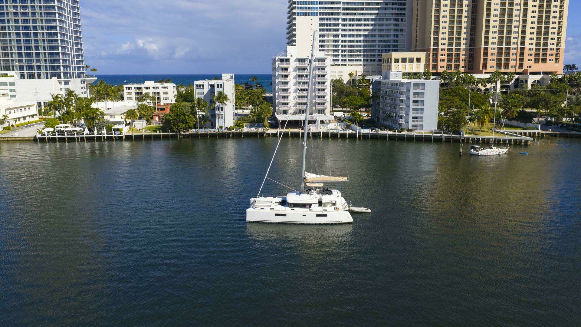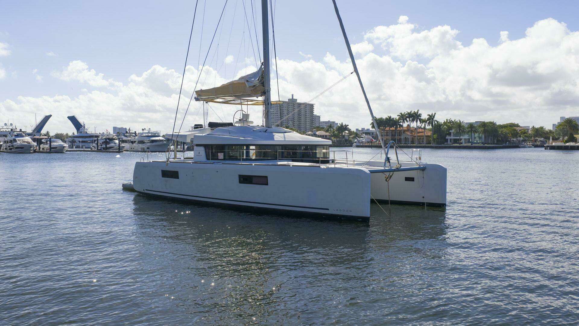 2021 Lagoon 52 Flybridge catamaran for sale. 6 ensuite staterooms, B&G electronics, twin Yanmar 57HP engines, 7kVA generator, A/C throughout, 74 GPH watermaker, full charter-ready galley, and Ocean Master tender on davits. Low hours. Priced to sell.