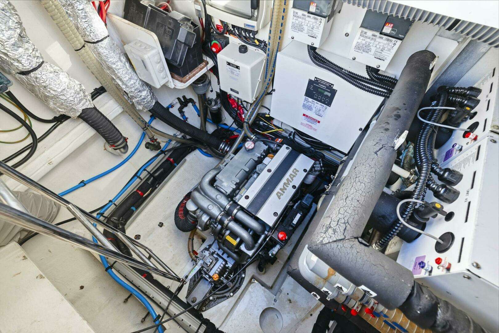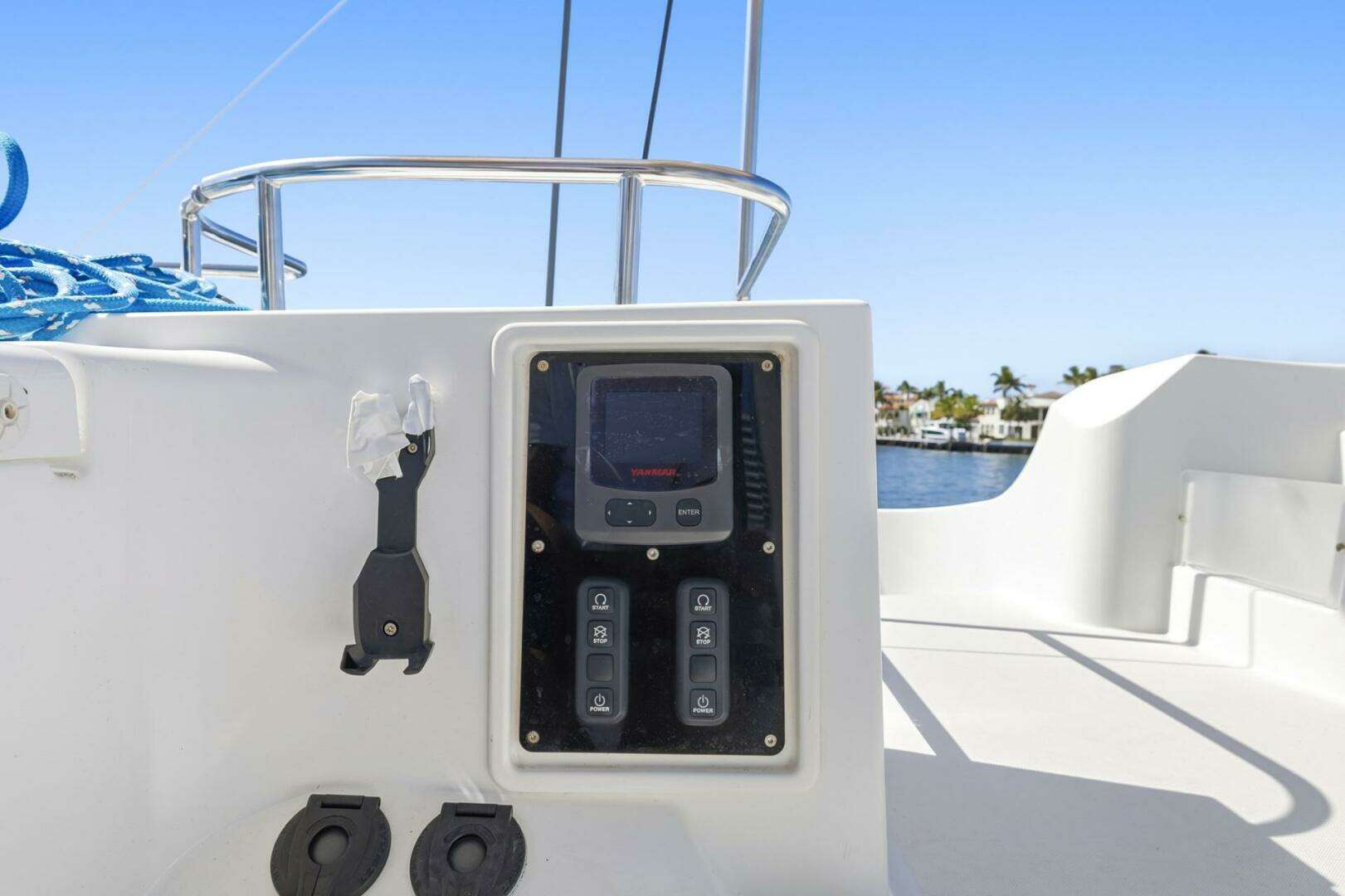 - Twin Yanmar 57HP engines, bow thruster, electric winches, and self-tacking jib