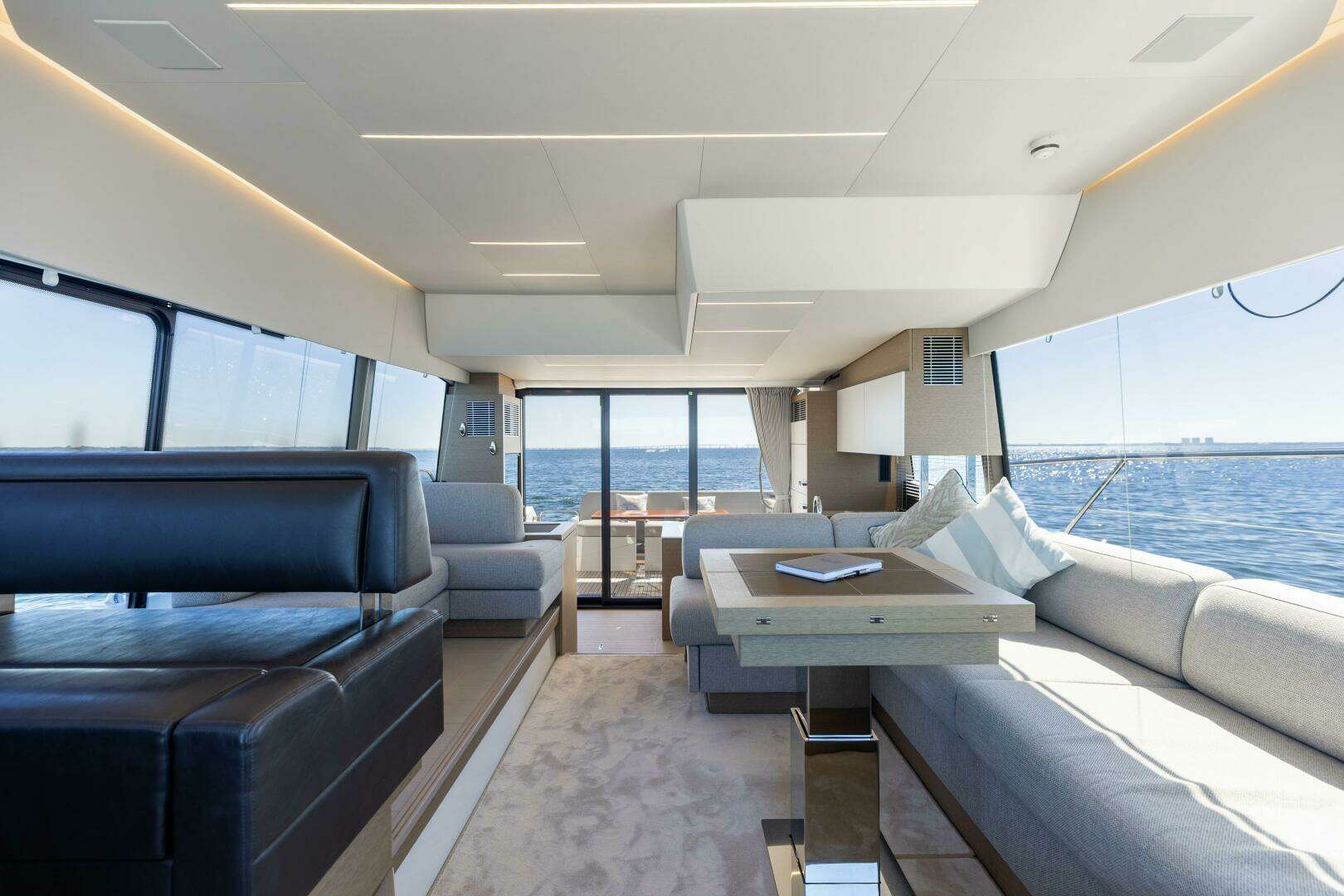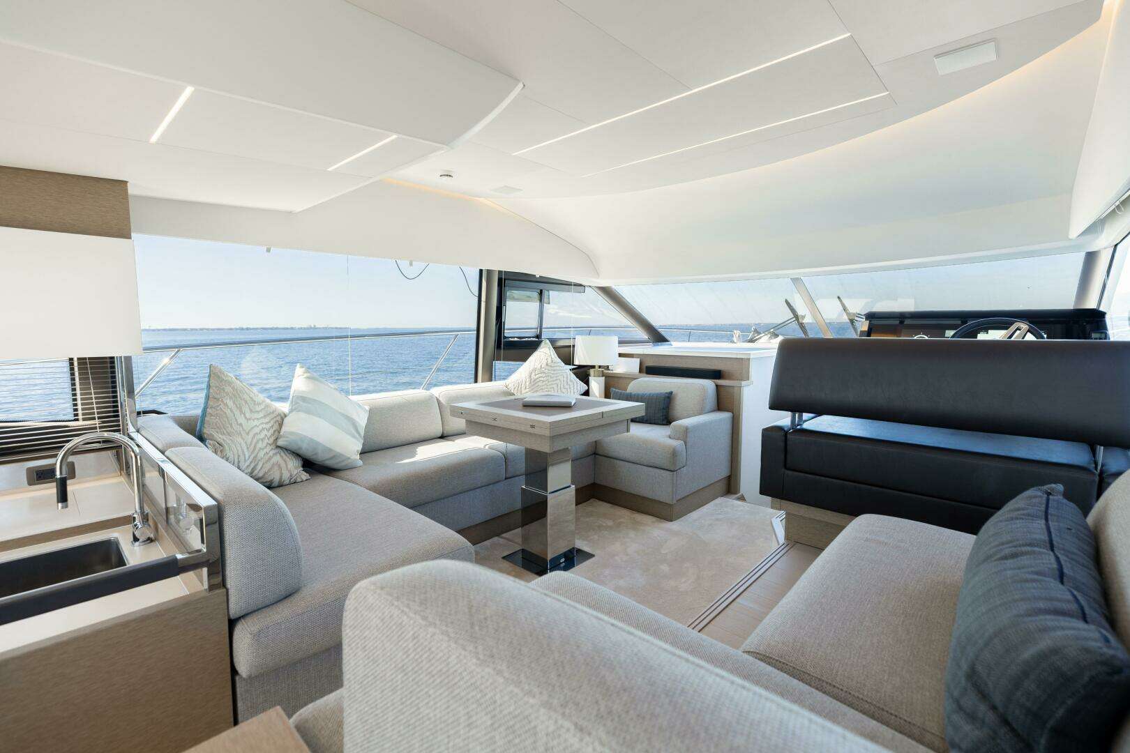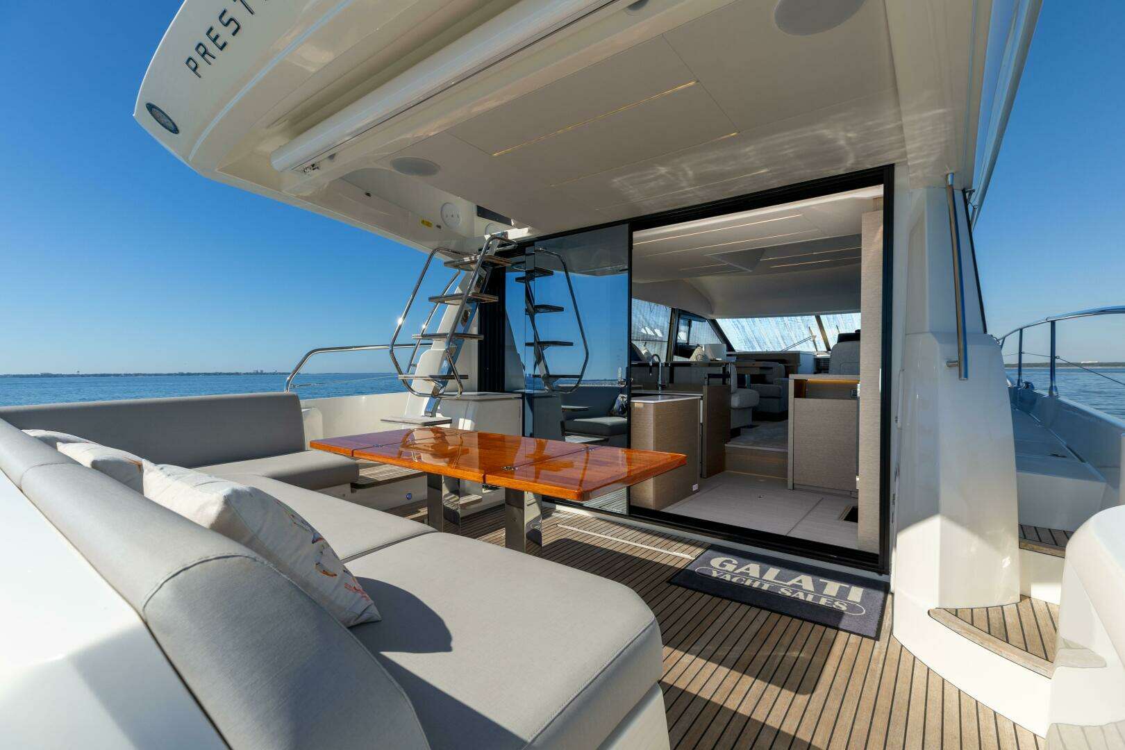 Underway, the Prestige 520 Fly is powered by twin Volvo IPS650s, delivering quiet, efficient performance with a comfortable cruise in the mid-20 knot range. A Seakeeper 6 gyro stabilizer enhances stability both offshore and at anchor, while the addition of a watermaker extends her independence for longer or more secluded trips. From the Gulf Coast to the Keys and across to the Bahamas, the 520 reflects Prestige’s reputation for ride quality, livability, and modern design — supported by Galati’s legacy of service and customer care.