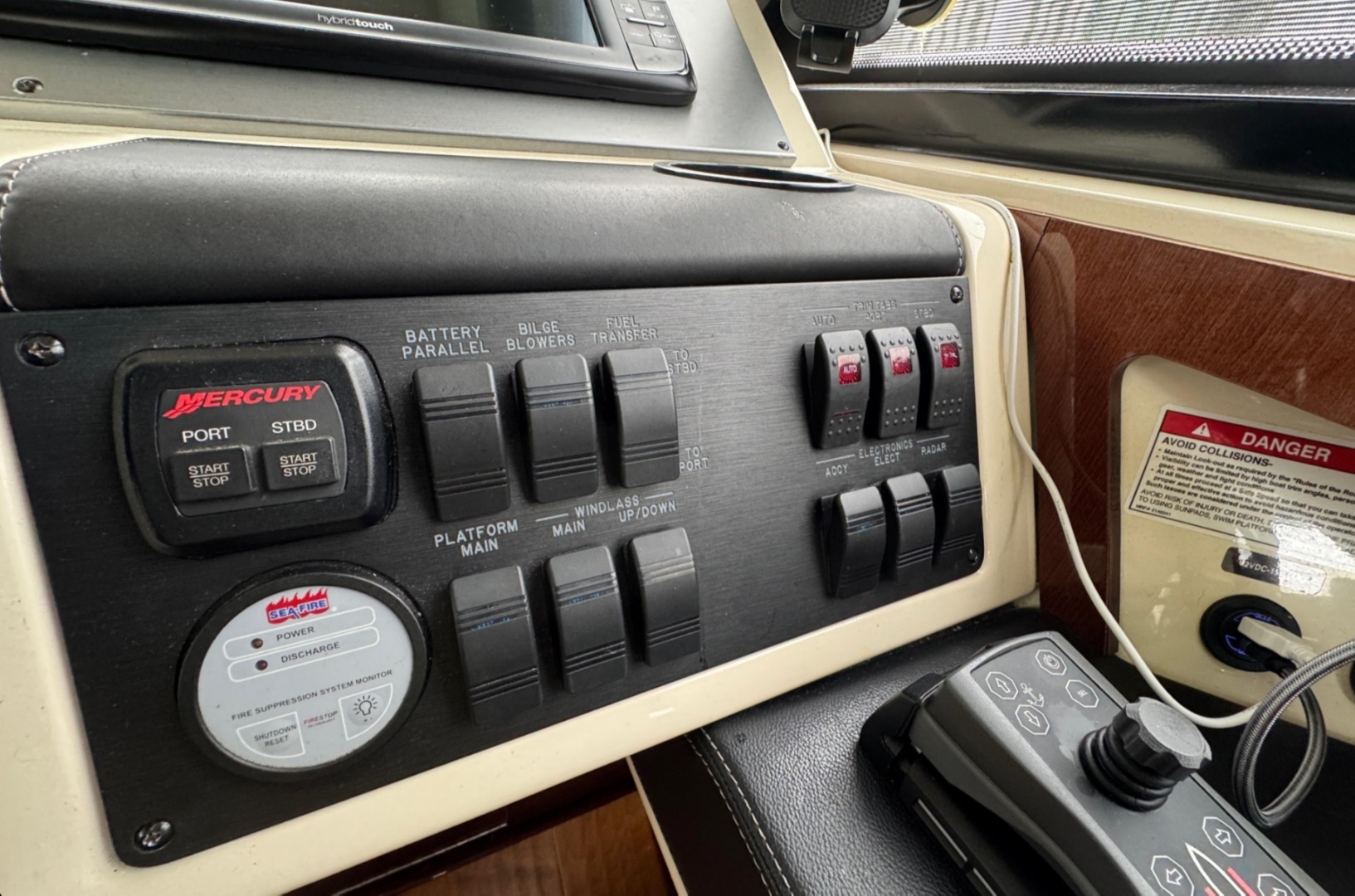 - Enclosed helm deck with glass doors