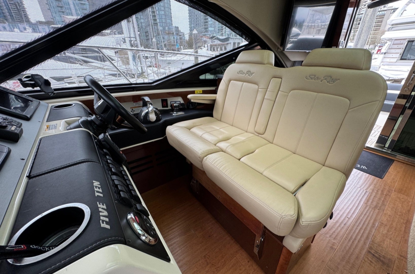 A very clean 2015 Sea Ray 510 Sundancer with the layout, profile, and upper-deck setup Sea Ray fans want on this model. No flybridge. No extra bulk up top with clean express line, the sought-after glass doors, an enclosed helm deck, and a powered sunroof that make the boat feel current the minute you step aboard.