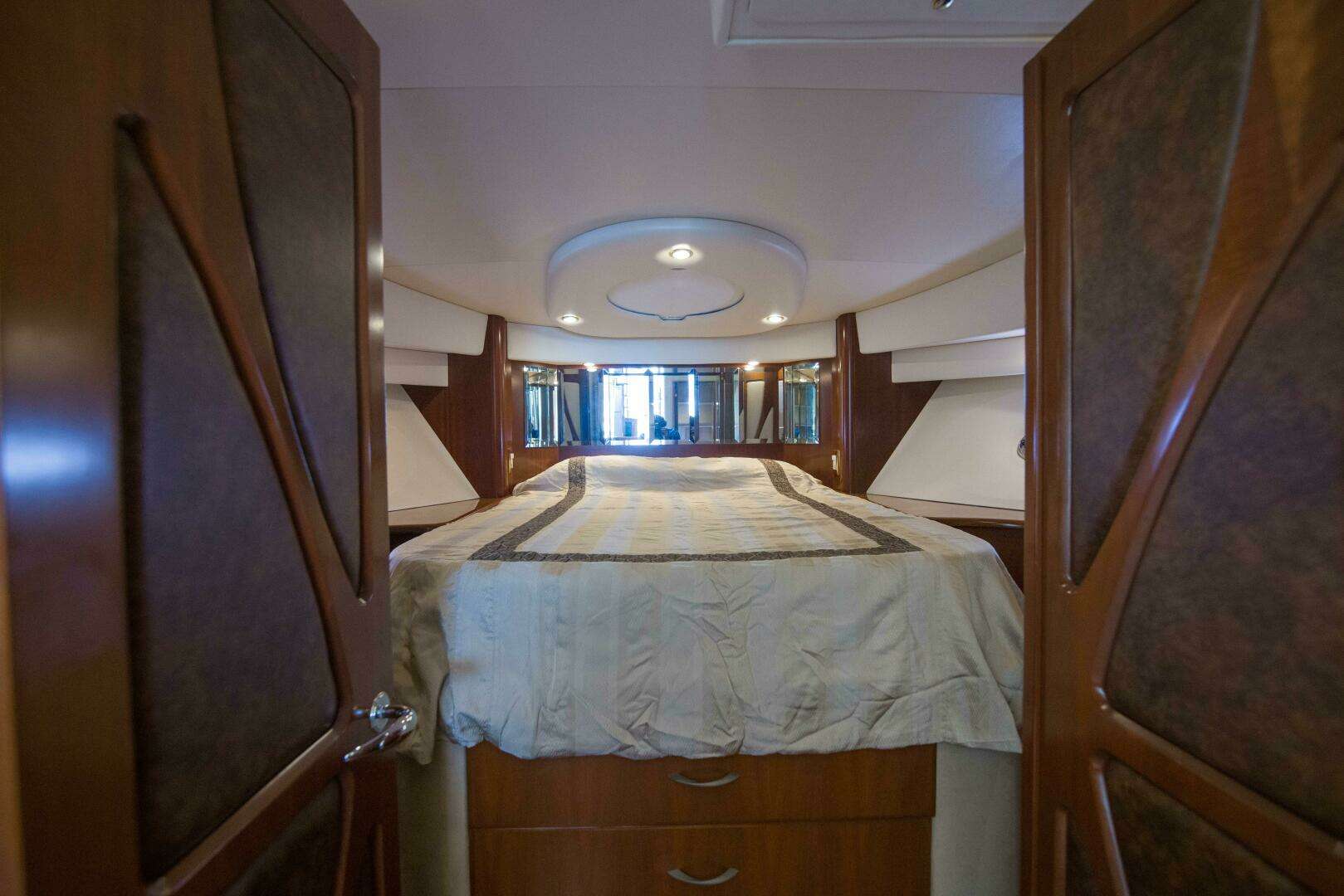 - Queen sized berth located centerline with storage underneath