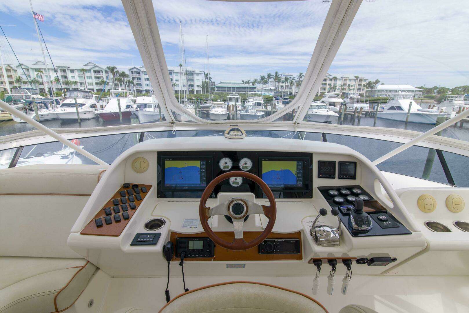 - Upper helm station with dual Upgraded Garmin touchscreen GPS monitors