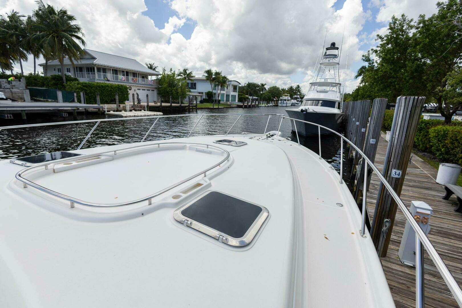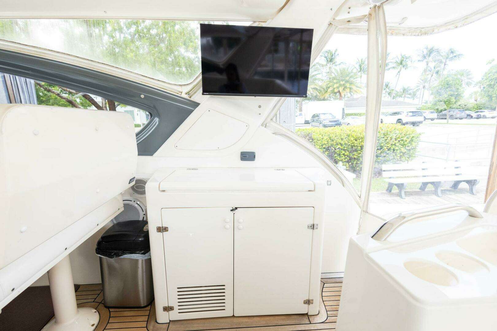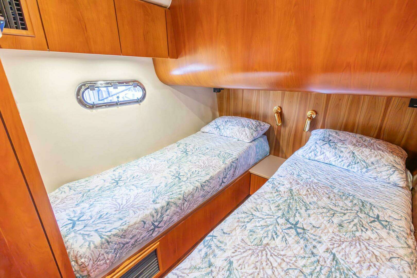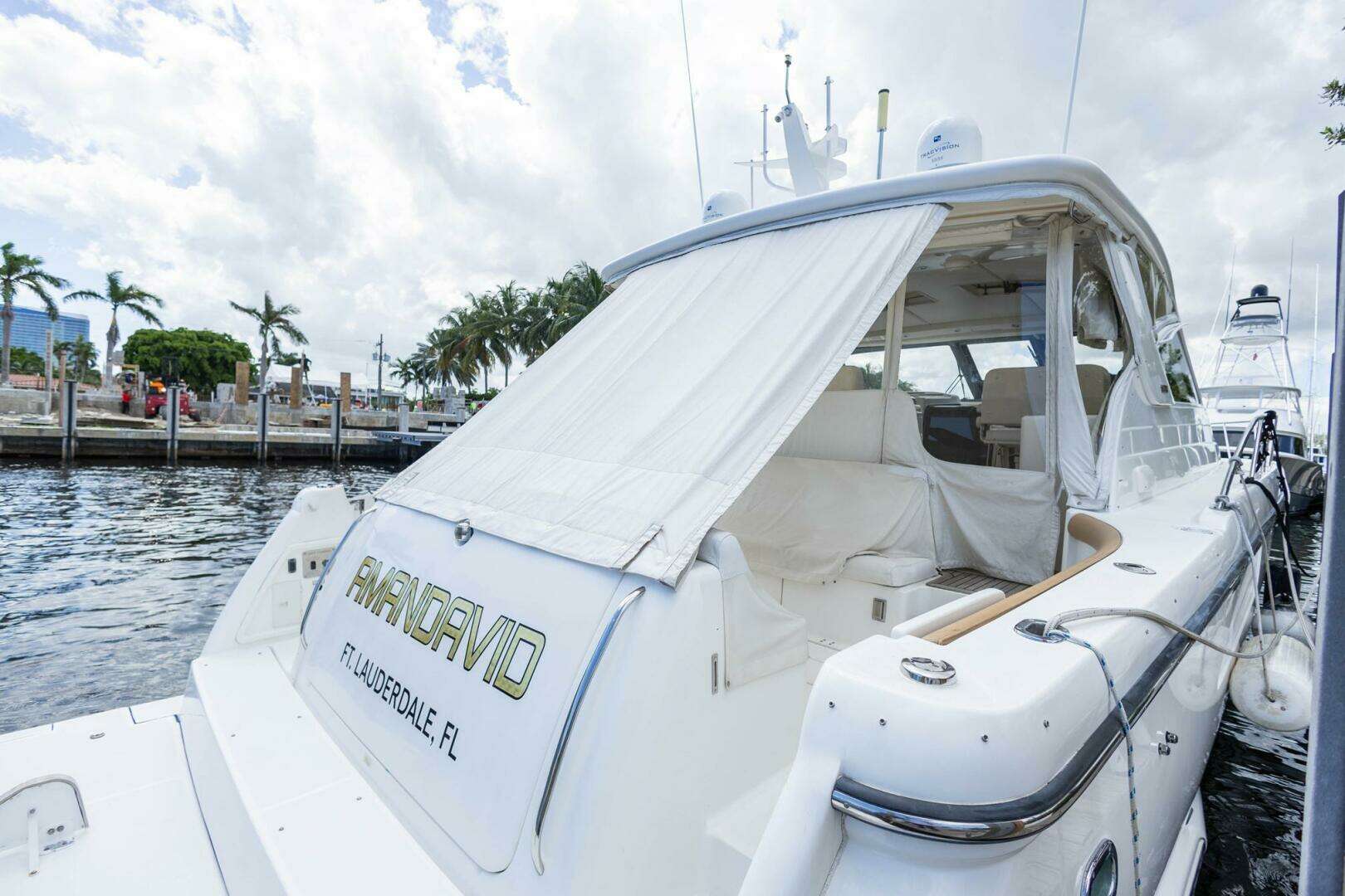 Up on deck, the large cockpit is made for entertaining. With generous seating, a wet bar, and easy access to the swim platform, it’s the ideal space for sunset cocktails or morning coffee with a view. The hardtop and climate-controlled helm provide comfort in any weather, and her smooth, quiet ride makes every voyage a pleasure.
