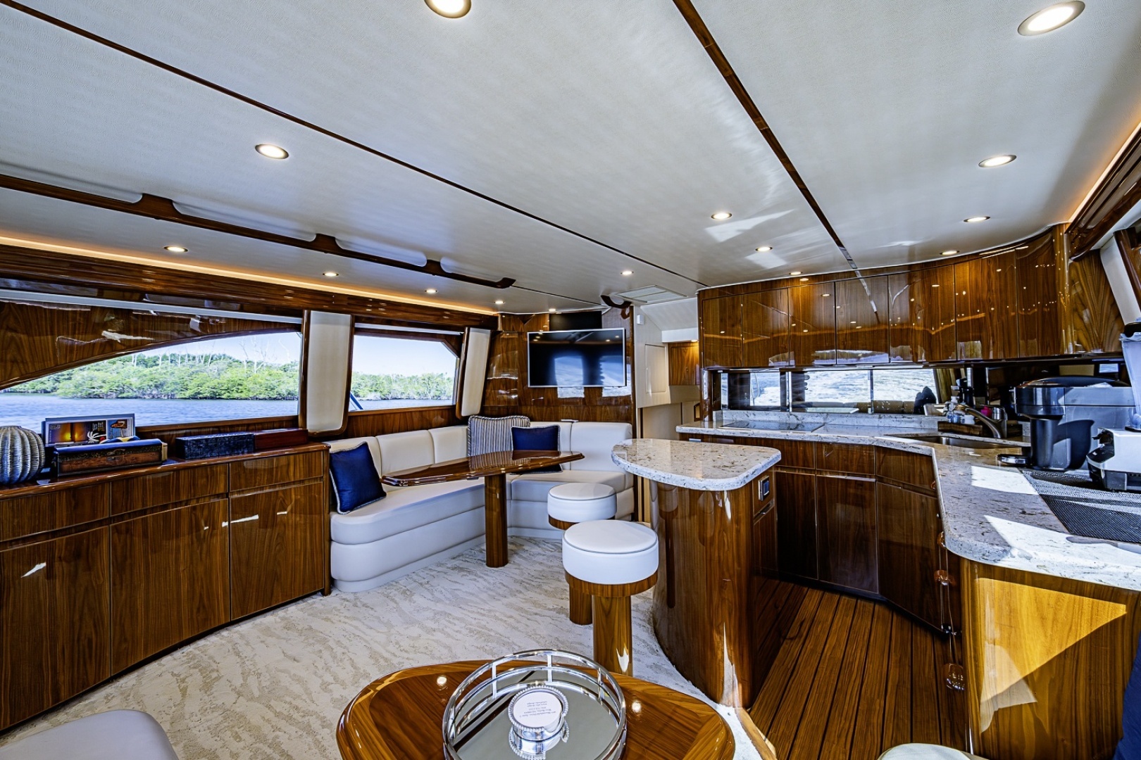 - Finished teak on galley island and dinette