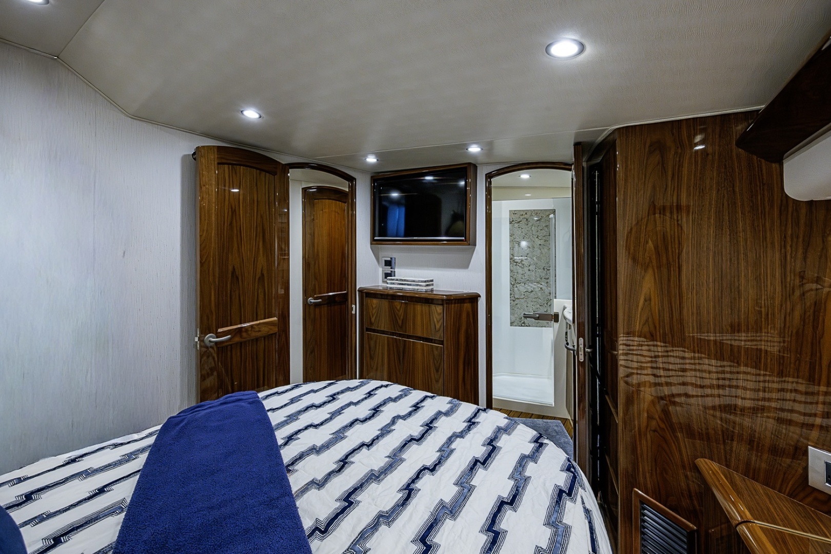 VIP cross-over forward stateroom, Fly bridge AC,