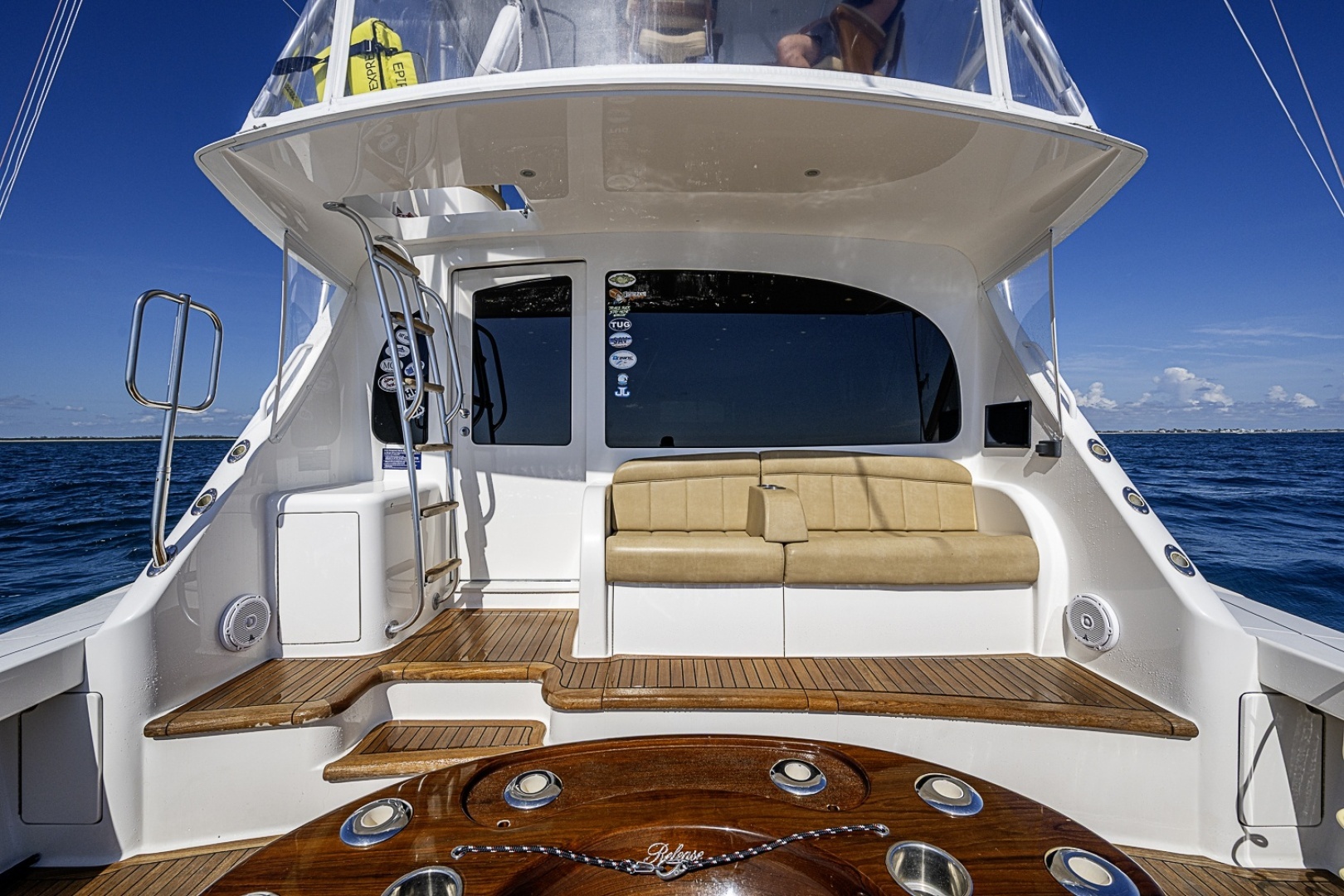 She features very low hour MAN 1400's, Koden Sonar, High Gloss Walnut Cabinetry, Seakeeper 9, Hydraulic Riggers, Extra Fuel, Teak Cockpit,
