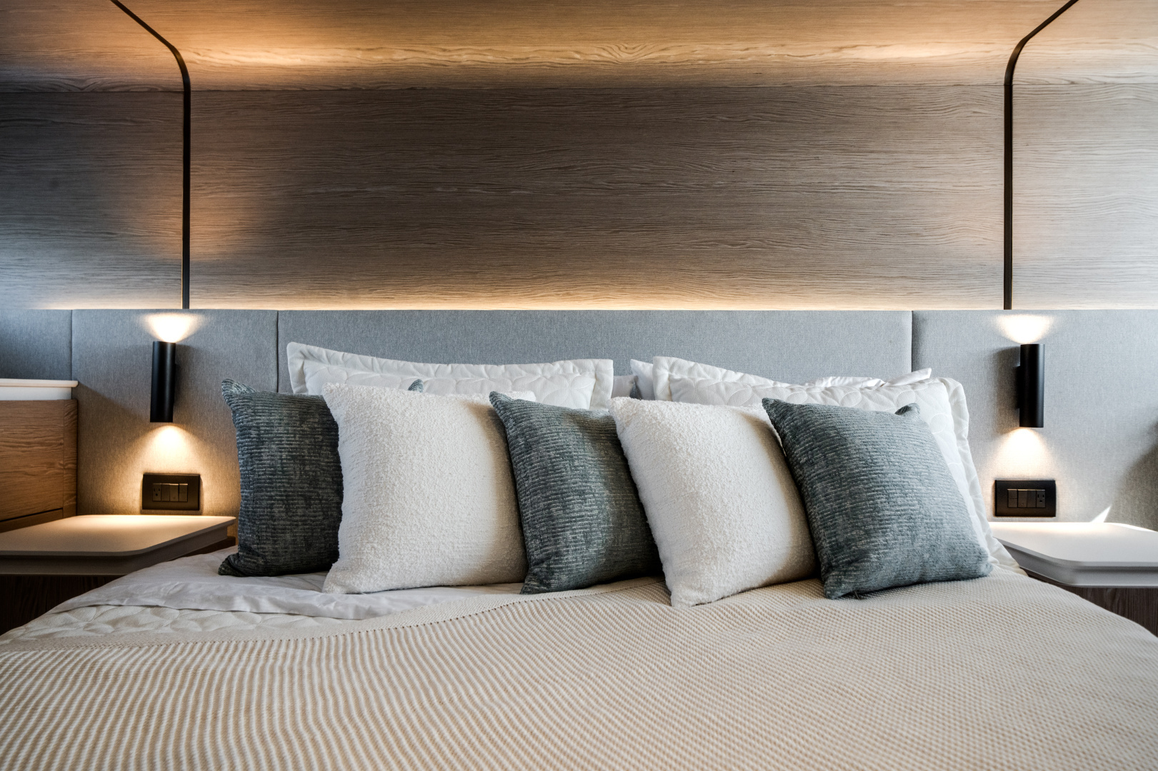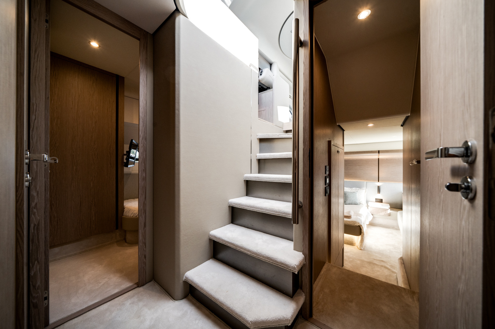 Great outdoor flow with a large flybridge, inviting aft cockpit, and versatile foredeck lounge—ideal for both entertaining and laid-back cruising.