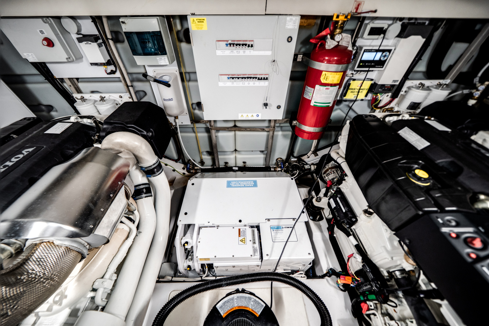 This particular vessel is equipped with the optional air-conditioned toy storage room in lieu of crew quarters, offering added flexibility for gear and water toys.