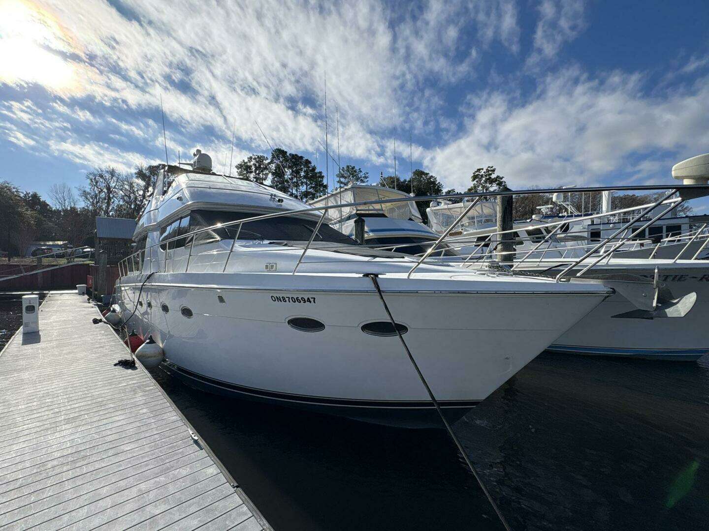 With an overall length of 54 feet, this vessel boasts a sleek fiberglass hull designed in a Deep Vee shape, ensuring a smooth and stable ride on the water.