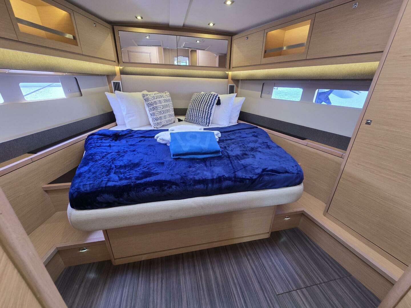 - Lighting: Courtesy lights in cockpit, overhead LED strip in bimini, underwater lights, LED navigation lights, LED tricolor masthead light, LED anchor light, steaming light, deck light