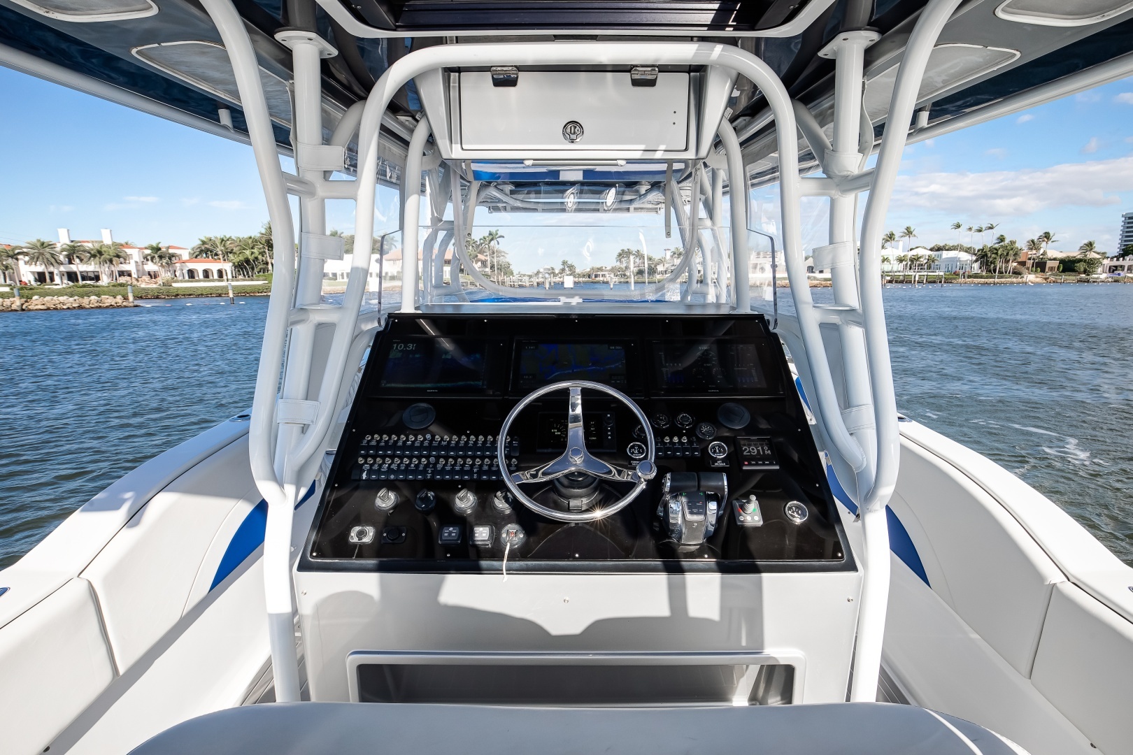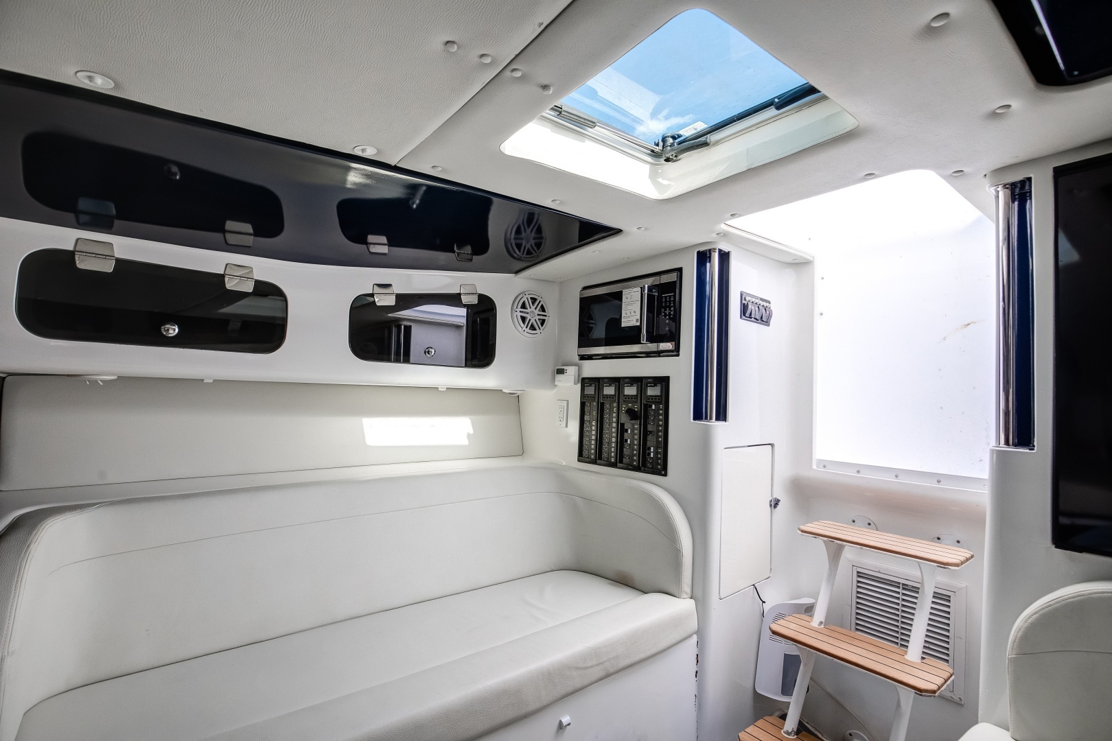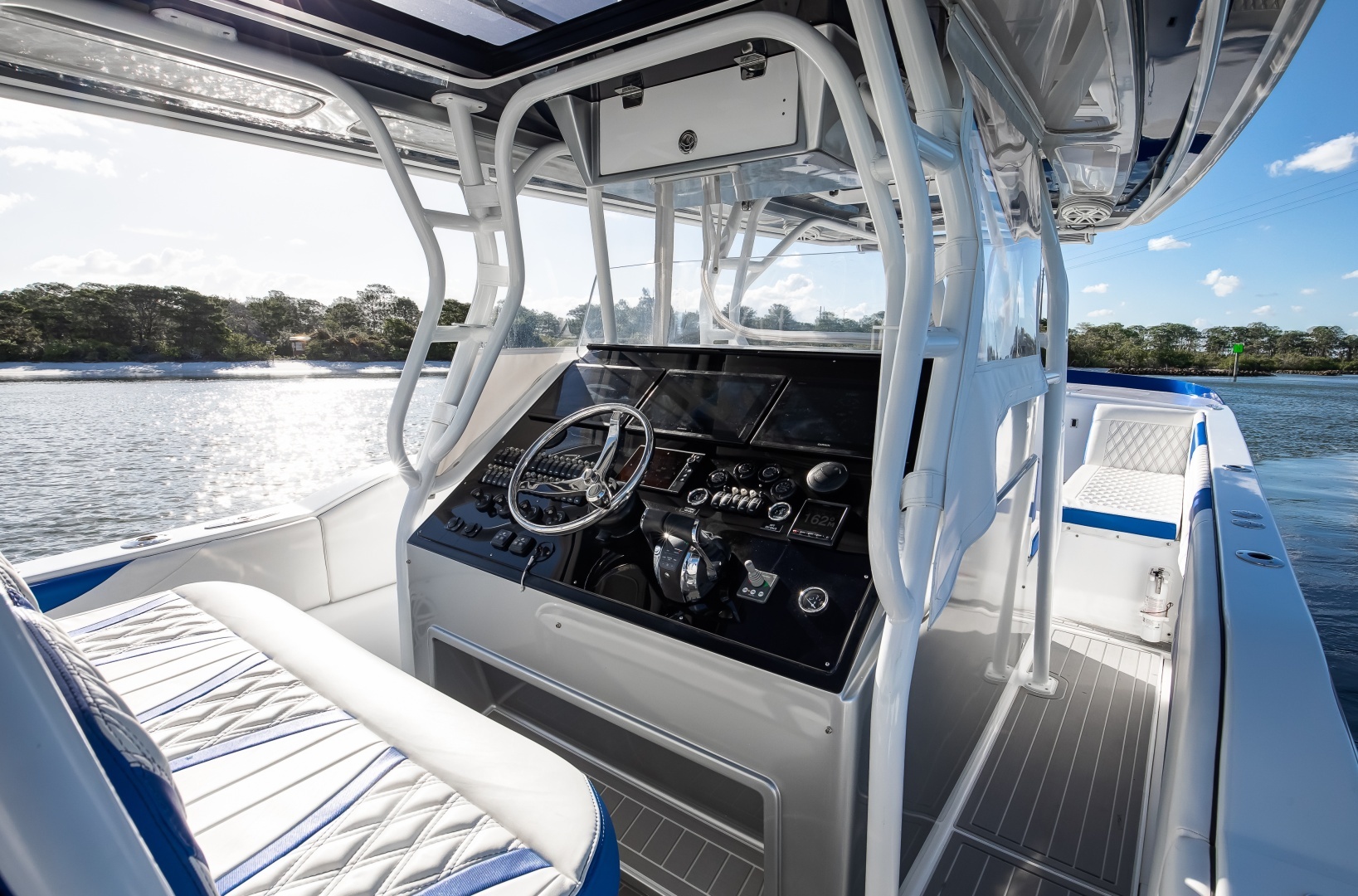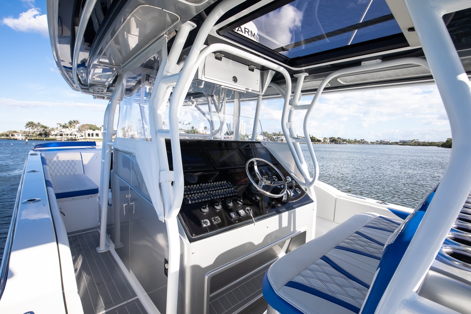 She is well-equipped with premium features including a full Garmin electronics package, JL Audio sound system paired with a Fusion head unit, SeaDek flooring throughout, and a windlass for effortless anchoring. A 2026 Next Gen generator ensures dependable onboard power, while custom paint adds a distinctive, head-turning finish.