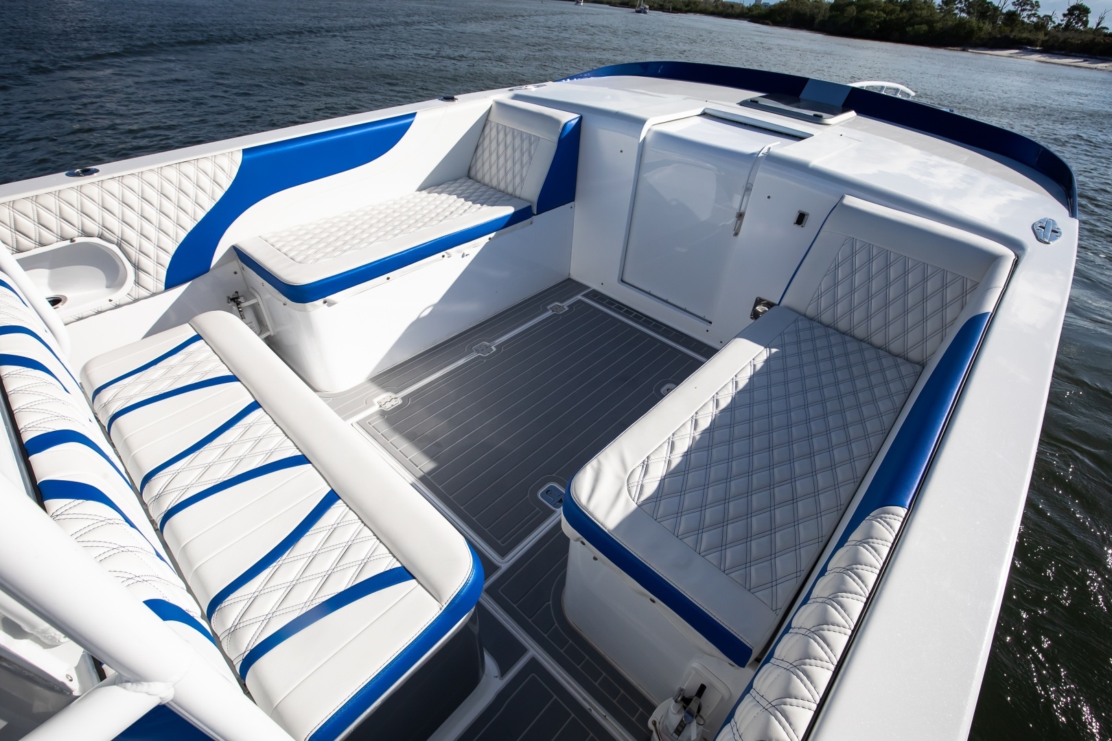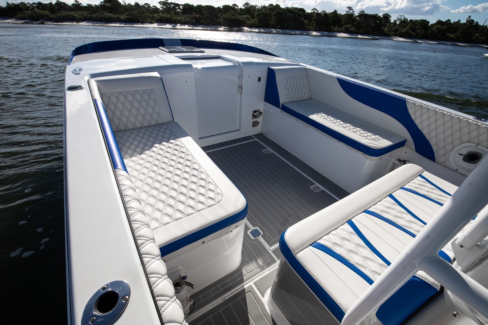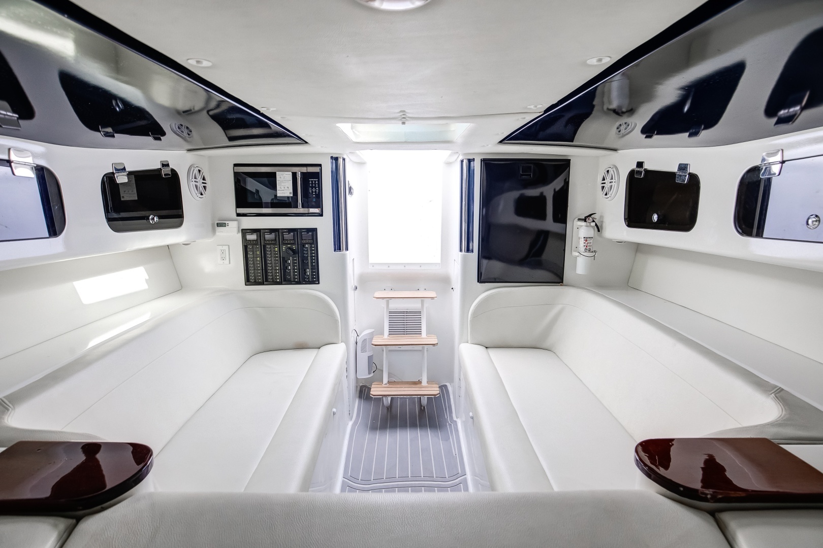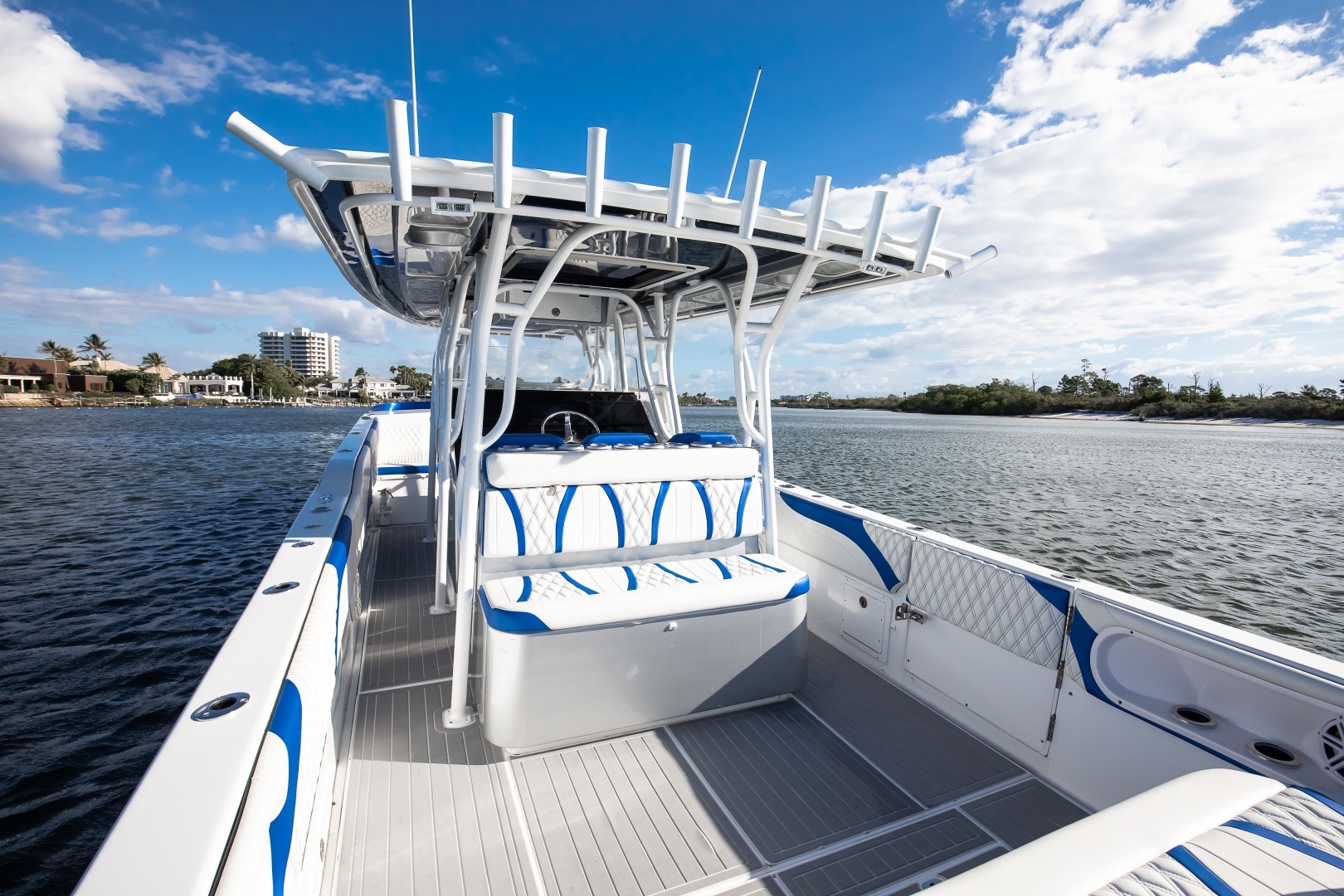 She is well-equipped with premium features including a full Garmin electronics package, JL Audio sound system paired with a Fusion head unit, SeaDek flooring throughout, and a windlass for effortless anchoring. A 2026 Next Gen generator ensures dependable onboard power, while custom paint adds a distinctive, head-turning finish.