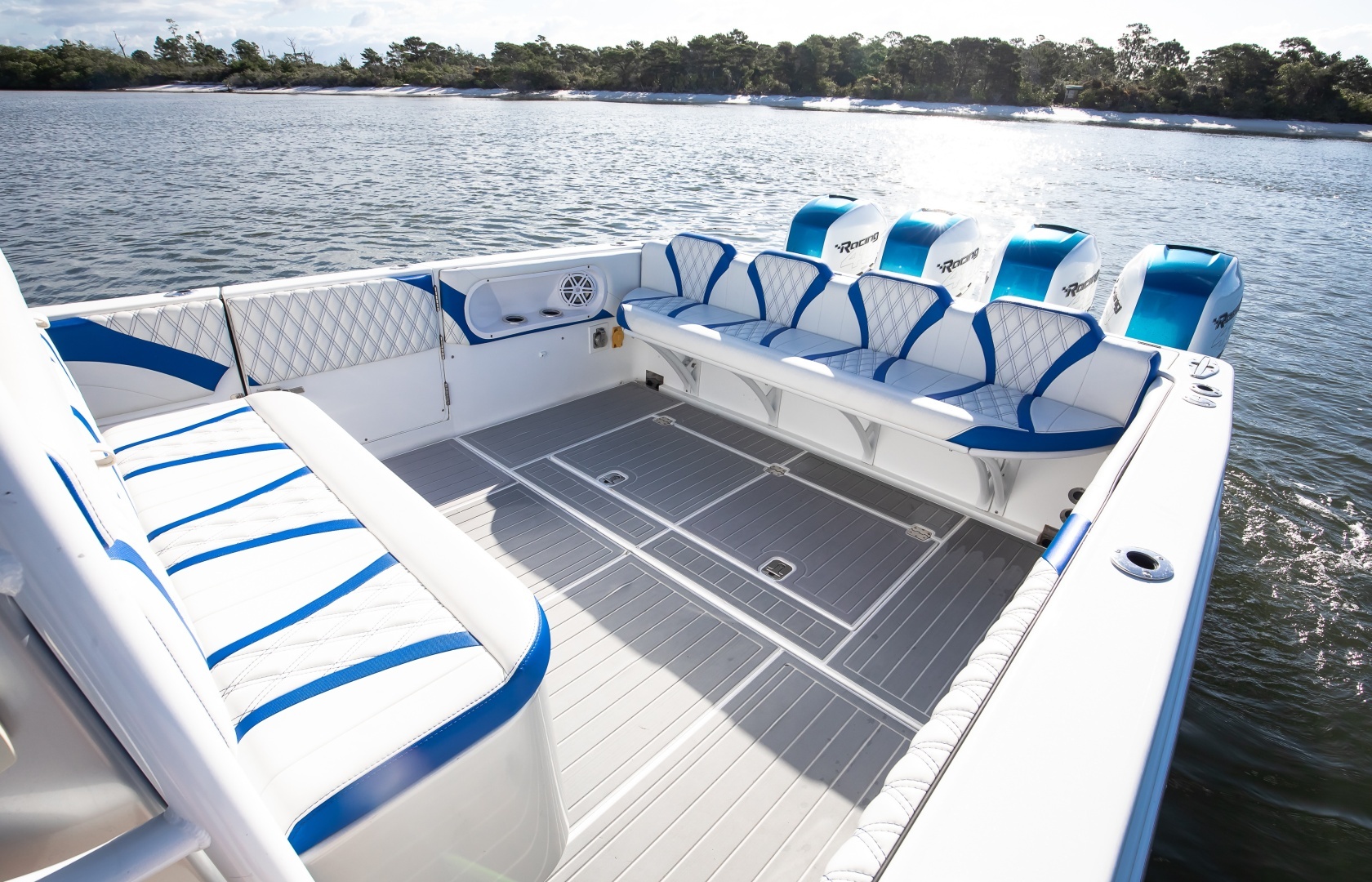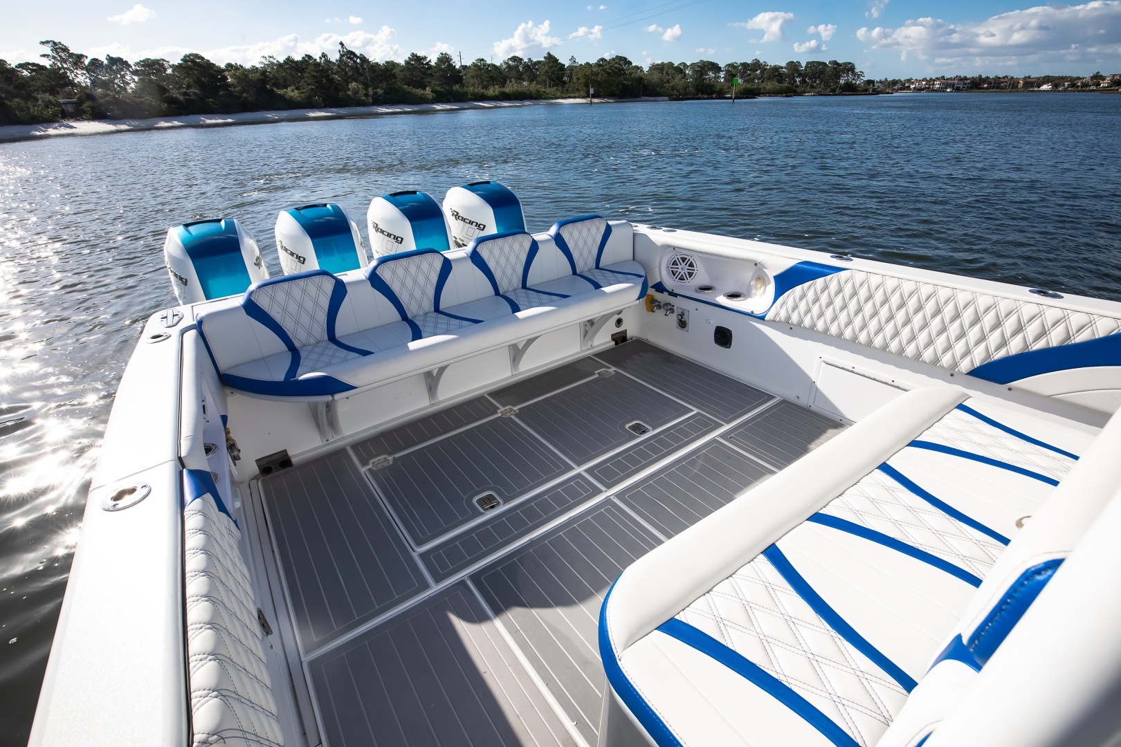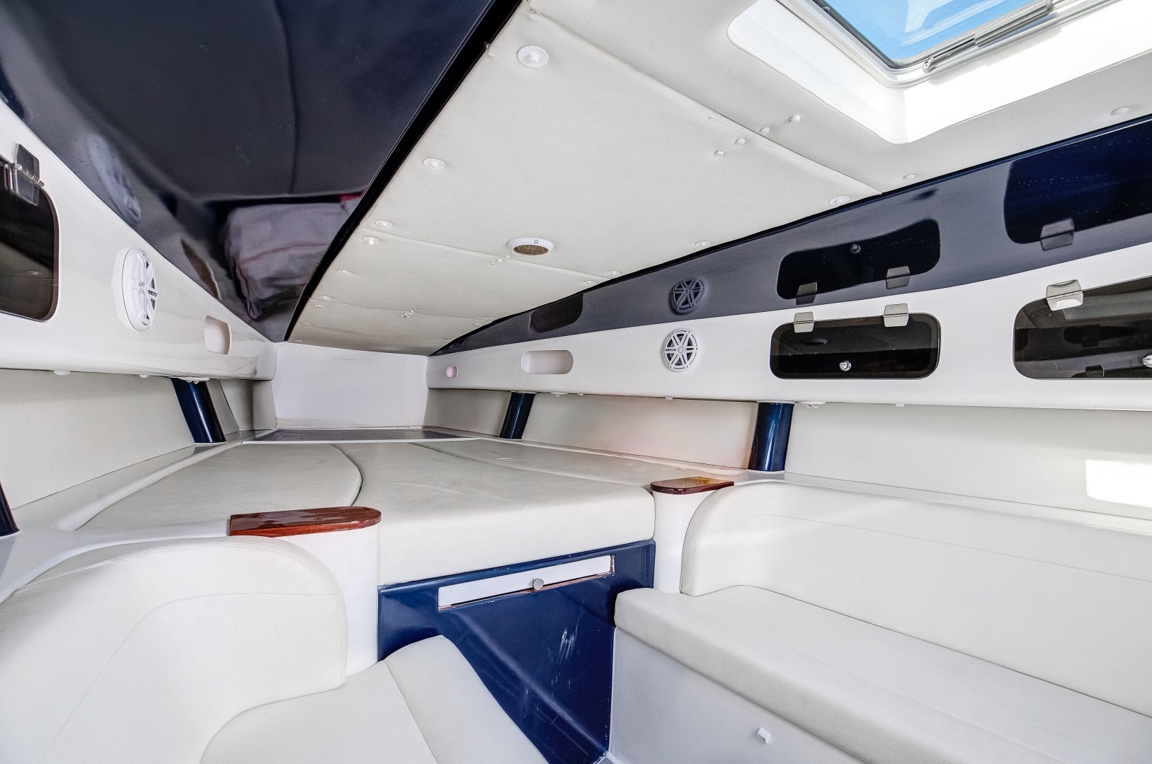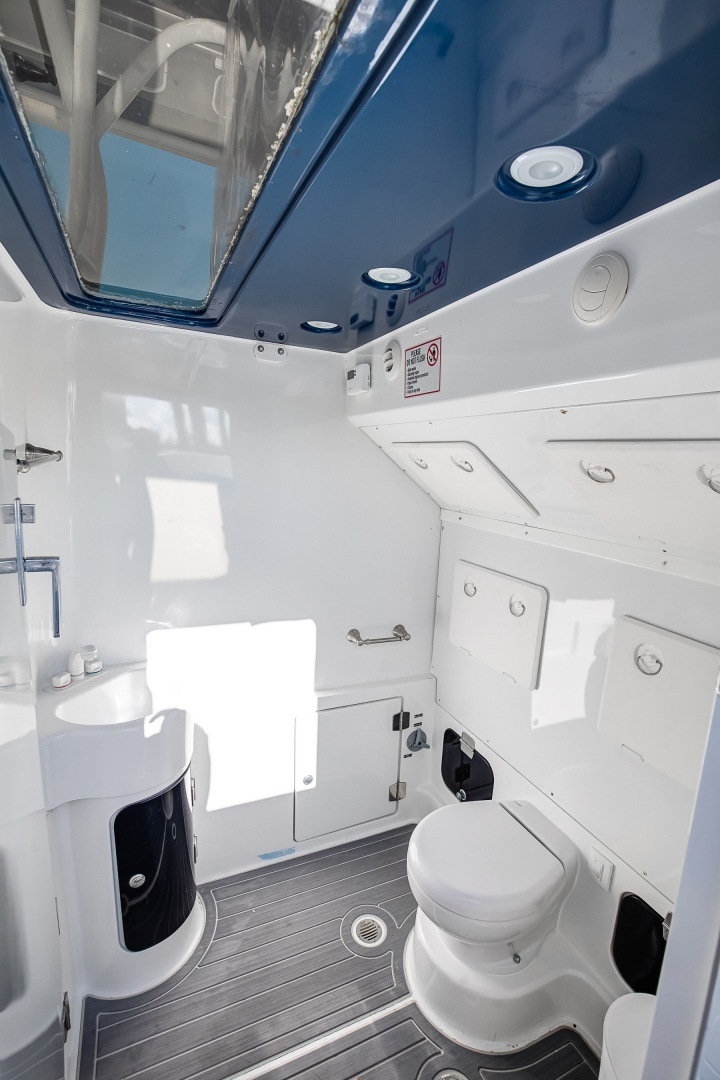 She is well-equipped with premium features including a full Garmin electronics package, JL Audio sound system paired with a Fusion head unit, SeaDek flooring throughout, and a windlass for effortless anchoring. A 2026 Next Gen generator ensures dependable onboard power, while custom paint adds a distinctive, head-turning finish.