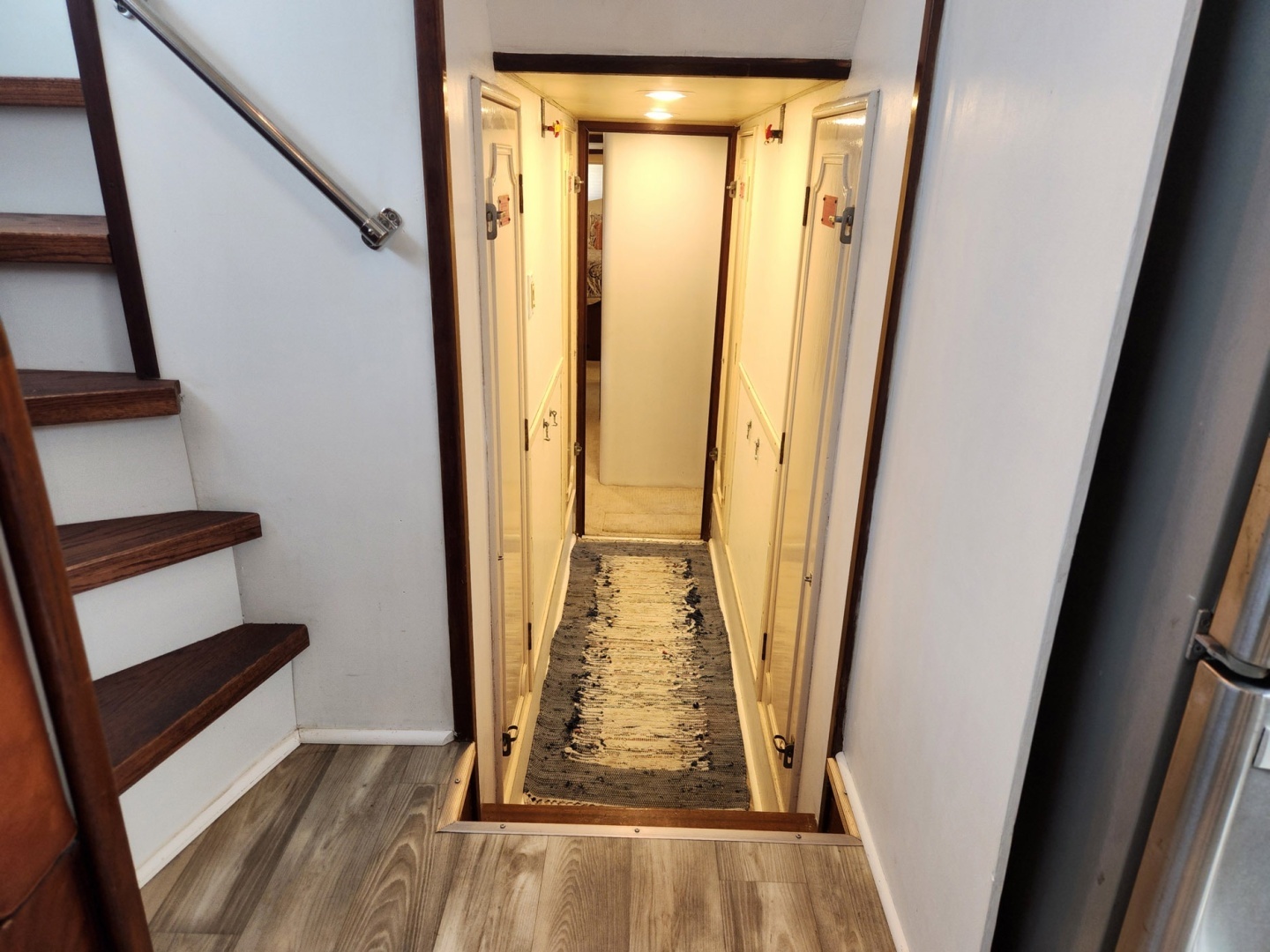 - The salon, aft deck, galley, and v-berth have faux wood vinyl flooring with area rugs throughout.(2022)