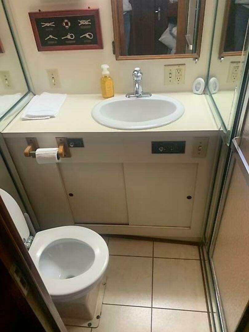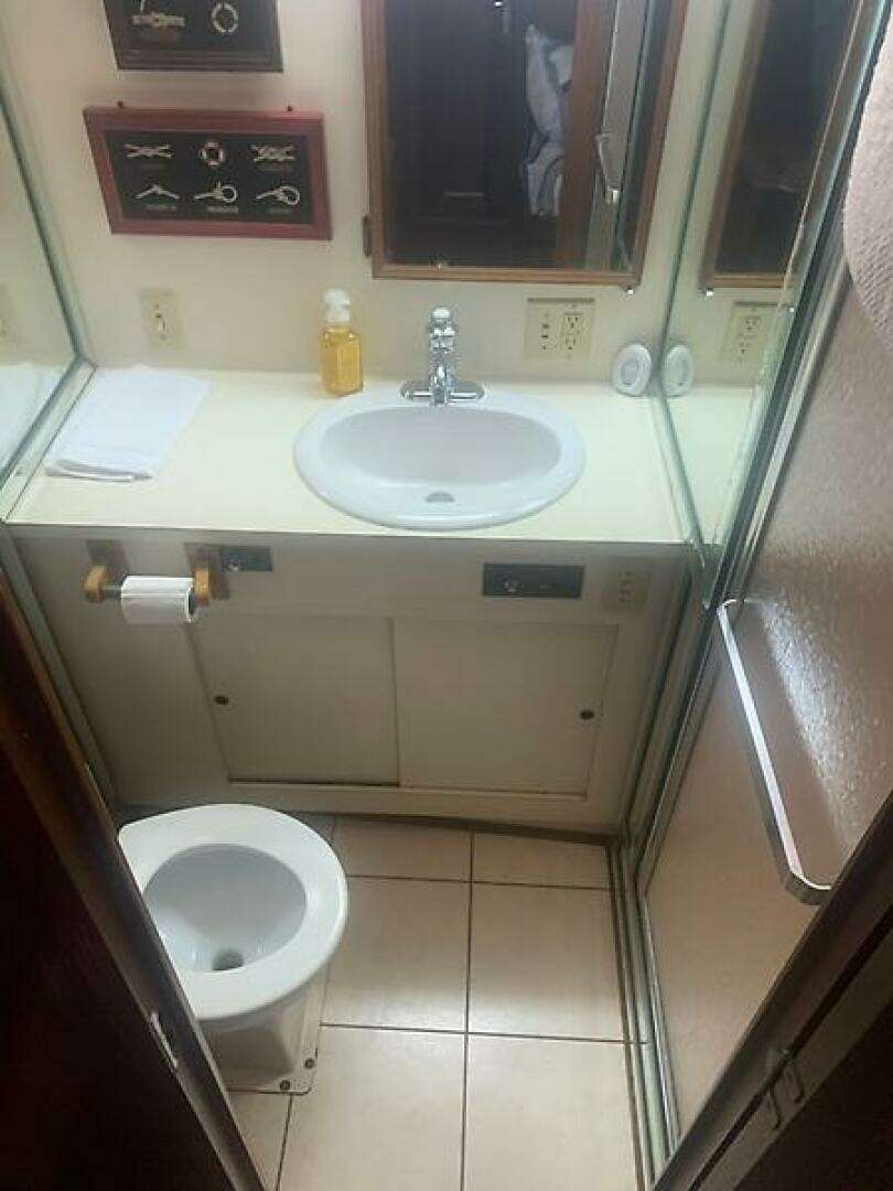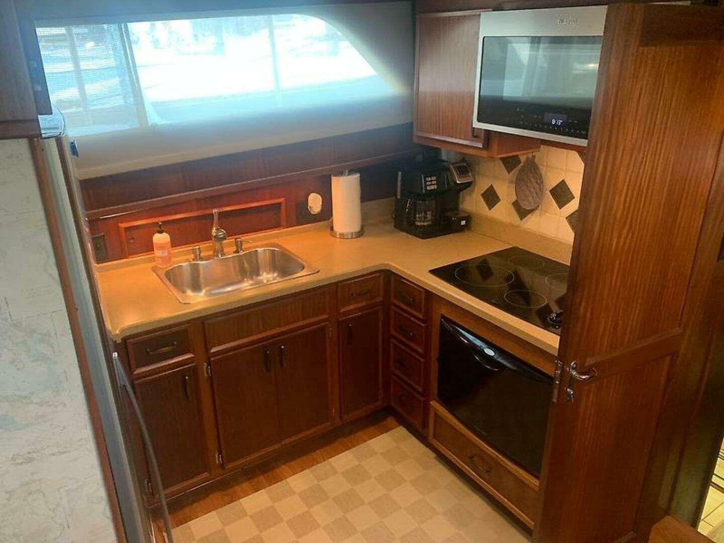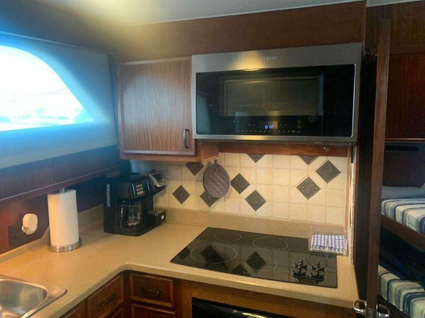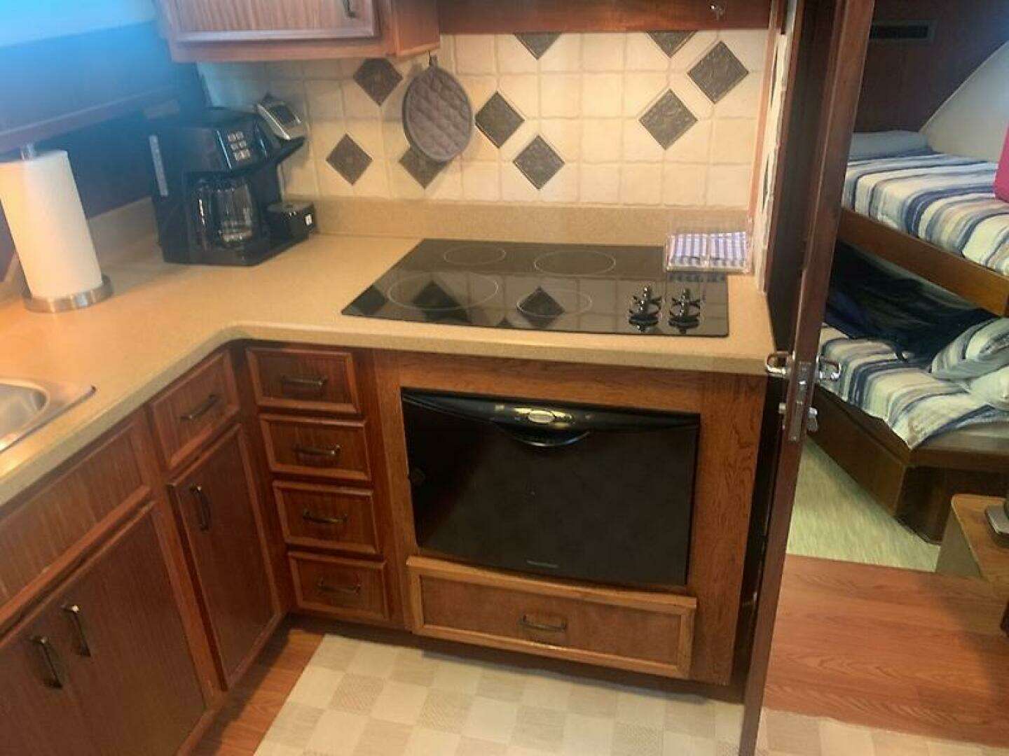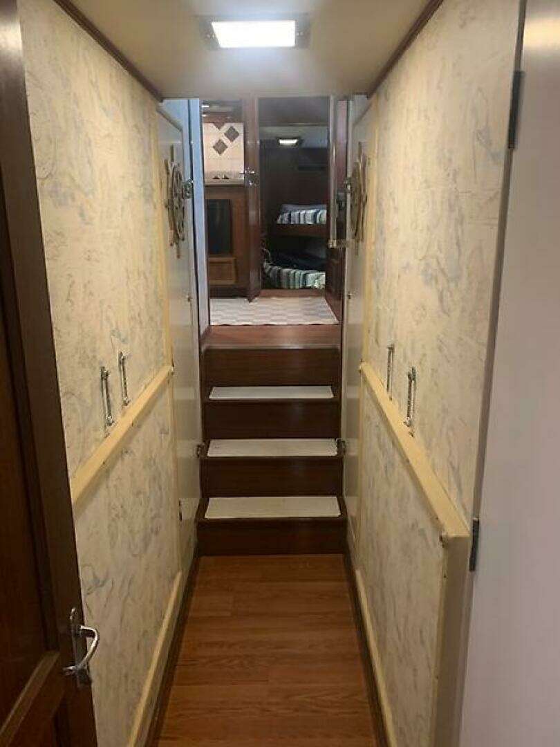 This model offers a desirable 3‑stateroom, 3‑head layout, along with separate engine rooms that provide both forward and aft access—an uncommon and highly valued design choice for maintenance and serviceability. Additional highlights include a pass‑through galley, molded foredeck seating, bow pulpit, and port and starboard wheelhouse doors for excellent deck access.