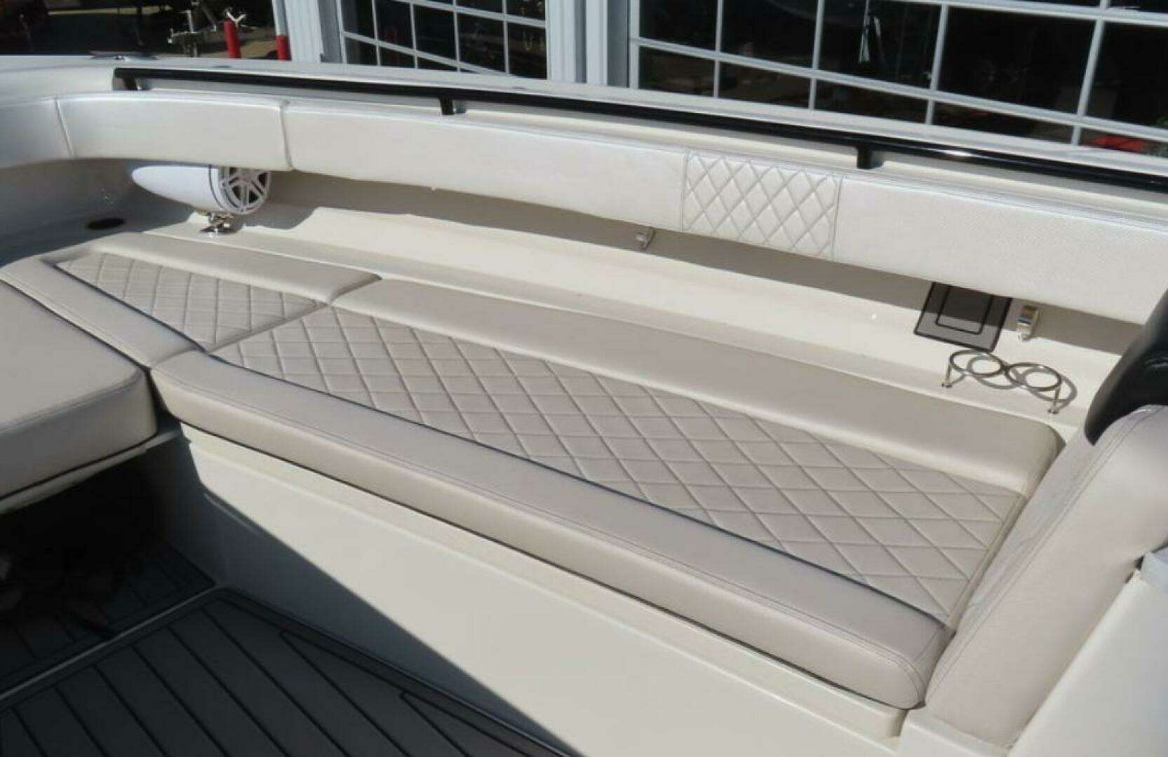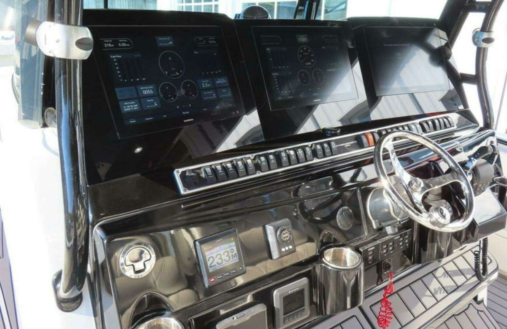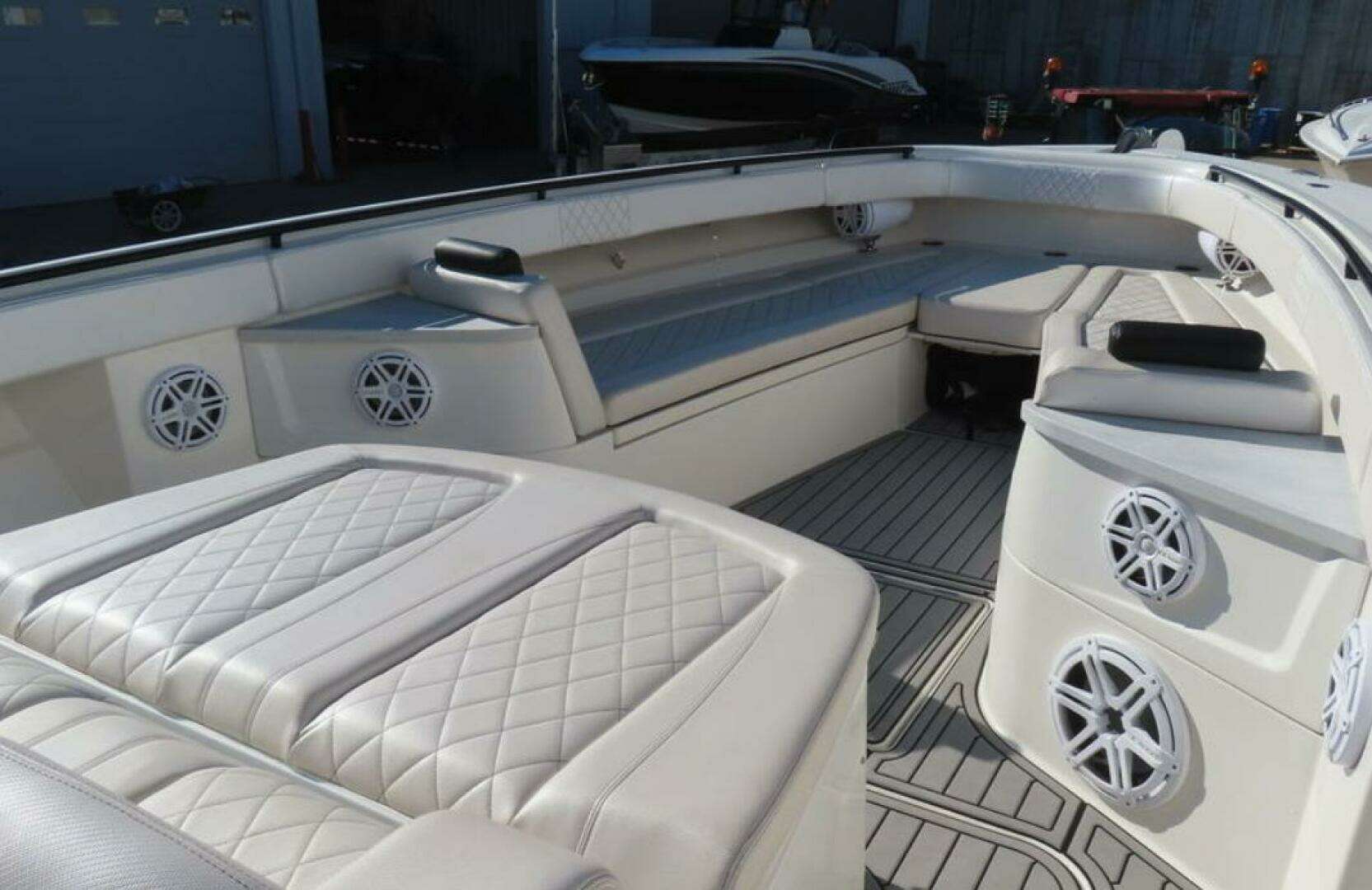 -Quad 425 yamaha XTO Engines-Helmaster Joystick Control with Setpoint-Bow Thruster-Kohler Generator-Seakeeper 5 Stabilizer-Rupp Outriggers-Full garmin electronics (3 17" MFDs, dual 1kw chirp sonar, XD Radar, vhf, autopilot)-JL audio sound system-Teak upgrades-Full cockpit sole seadek-Aft livewell seating with backrest-Dual 55 gallon baitwells-KVH Sat TV-Canvas covers-Additional deck rod holders-Diamond pattern upholstery inserts (new upholstery)