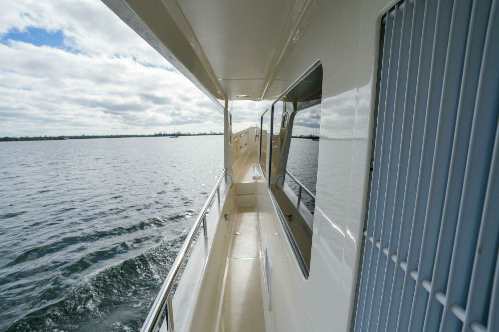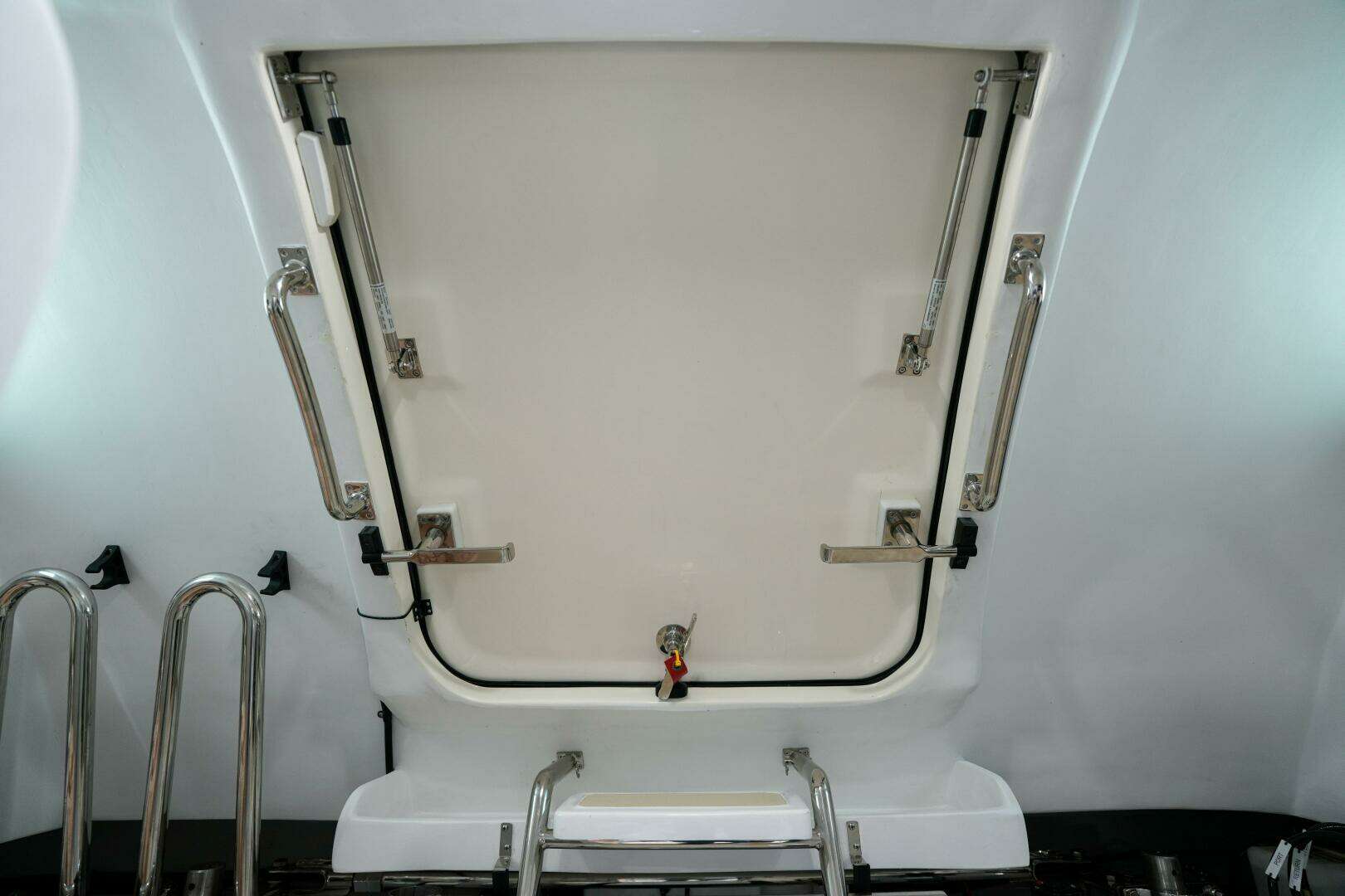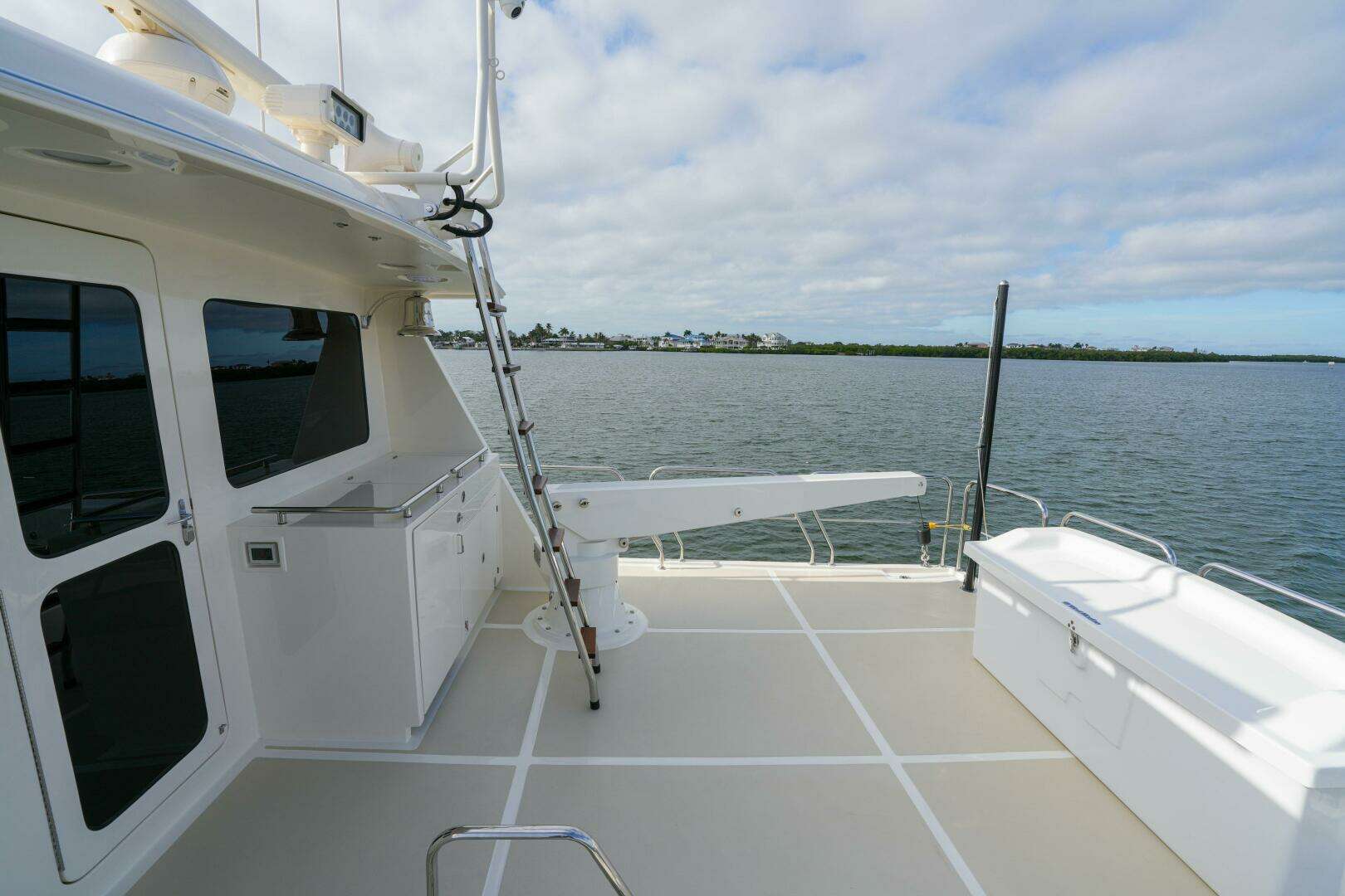 For added convenience and flow, this area includes port and starboard access doors, providing effortless entry to the side decks and forward to the bow.