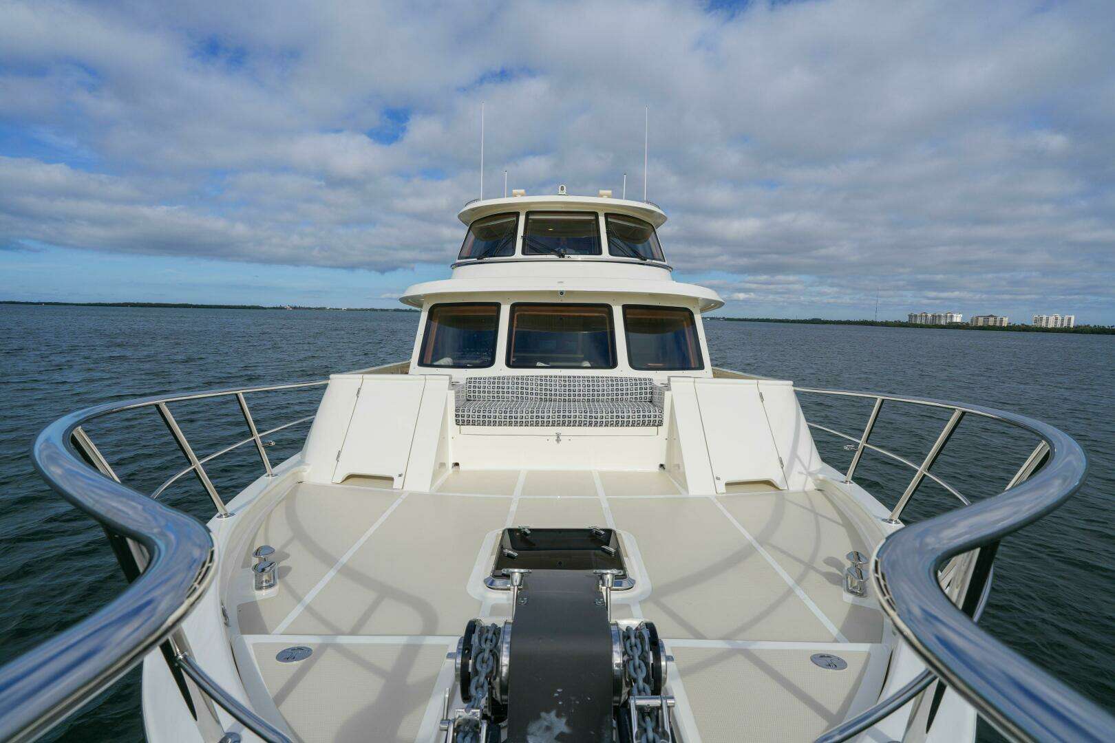 The fully enclosed Command Bridge aboard “Cheryl B” offers exceptional 360-degree visibility, providing outstanding sight lines for confident navigation in any conditions. Thoughtfully equipped with a comprehensive Garmin electronics suite, including multifunction displays, autopilot, Yacht Controller, VHF radios, and an array of integrated systems. This helm is designed to meet the needs of even the most discerning captain.