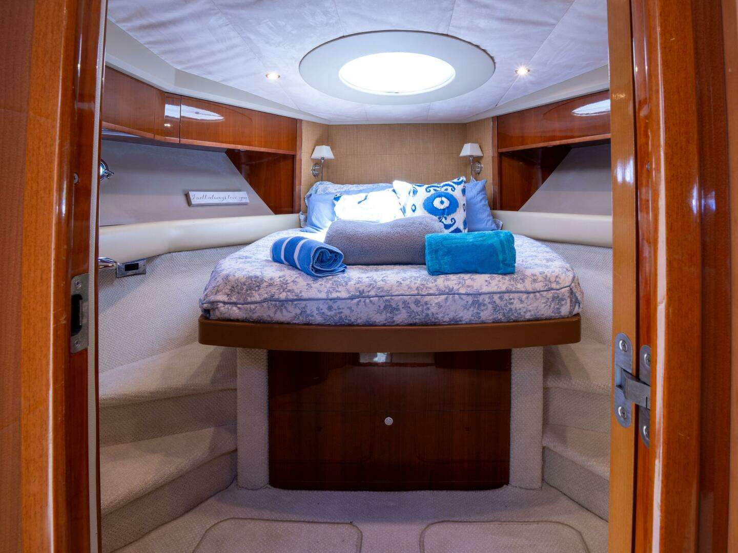 - Dinghy stowage garage beneath sunbed, with hydraulic lift system and electric winch for recovery of tender