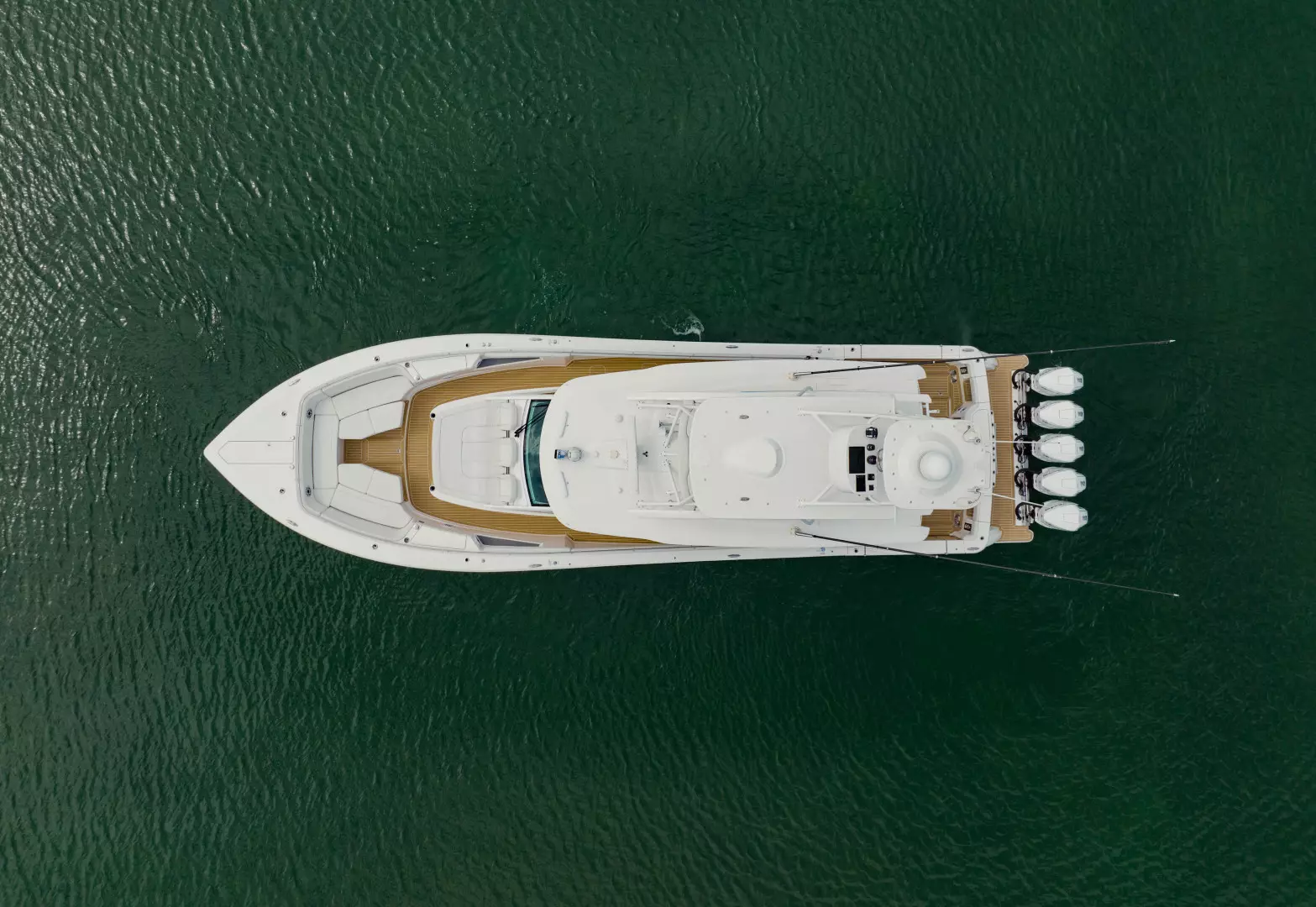 This 53’ Scout is well balanced with an all-chain anchor rode. The 53’ Scout comes on plane effortlessly without losing the horizon unlike many other large center consoles. The air-conditioned helm area with club seating behind is a supremely comfortable way to travel.