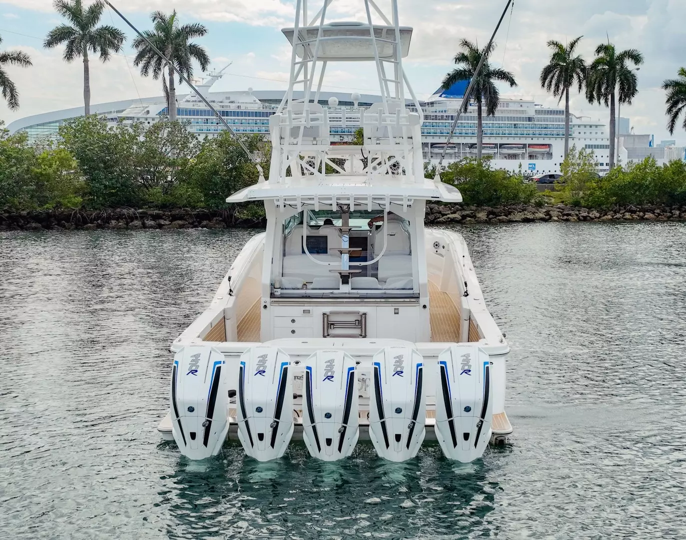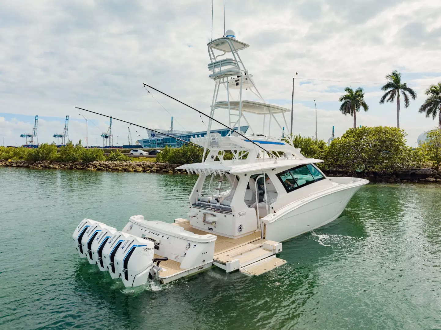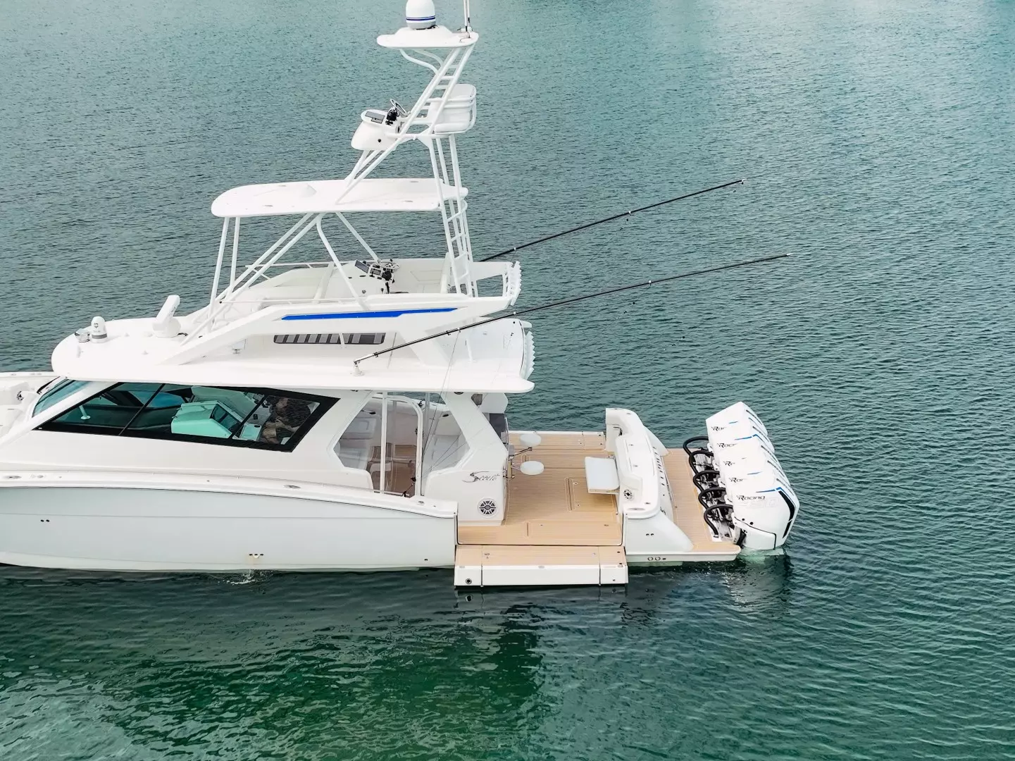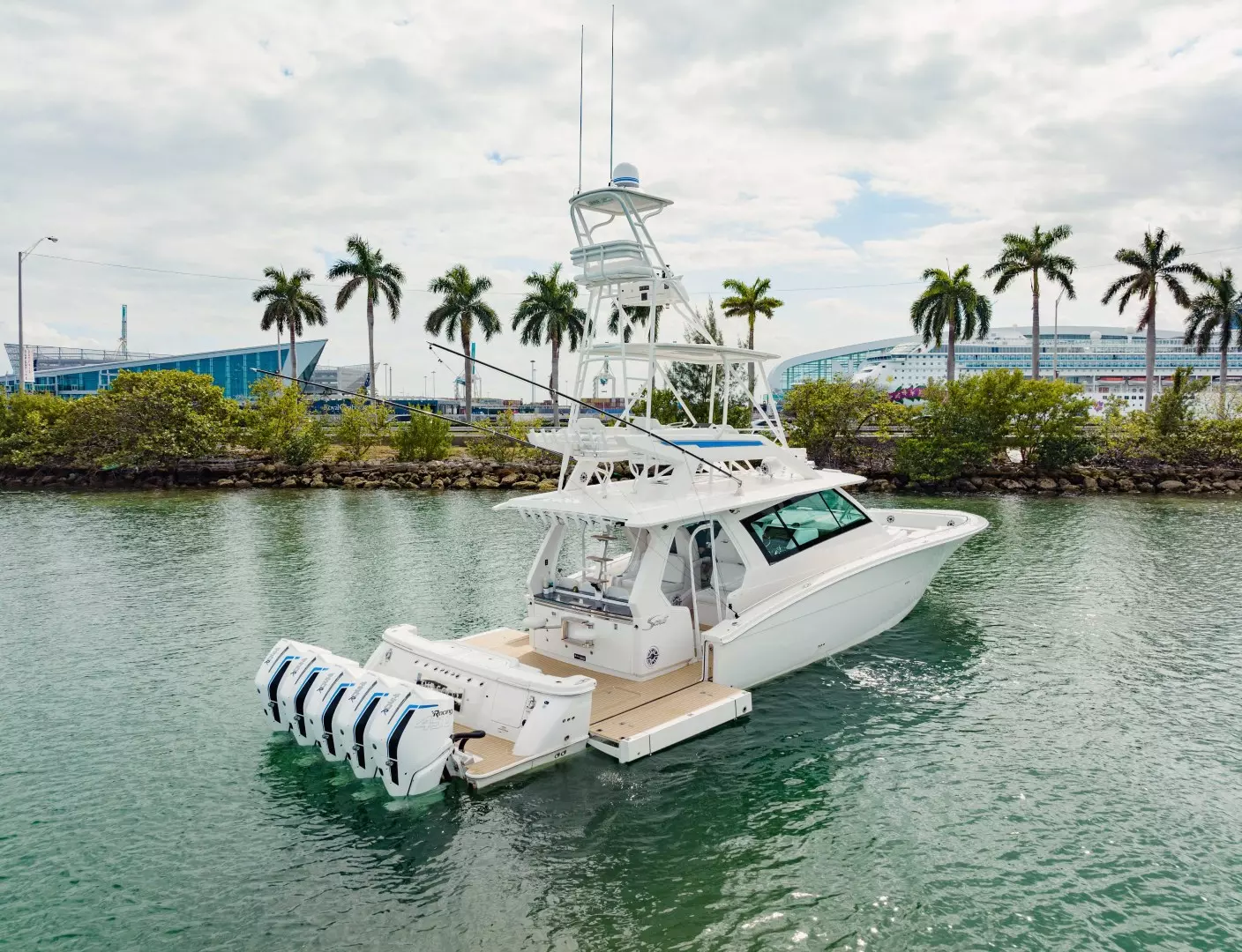 The ultimate “Super Yacht” fishing tender was built for family fishing and fun. This 530 Scout has been customized for a knowledgeable yachtsman by a fastidious captain. “The Coop” is turn-key and loaded with every option including customized, dual fold down side doors with a custom staircase into the water to make tank diving very easy. The cockpit has LP 30 amp twist lock outlets as well for deep dropping fun. With an effortless 50k cruise and plenty of fuel, the islands are calling. Extra safety measures were built in with C02 detectors and dual life rafts.