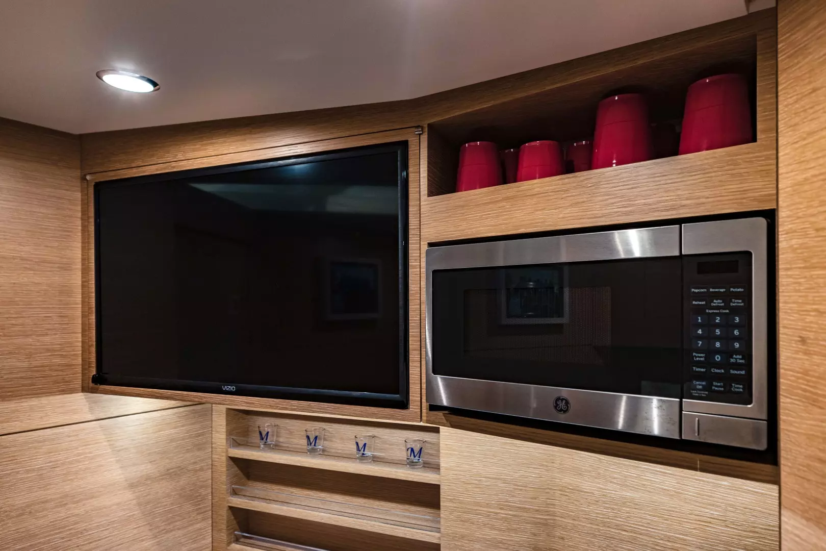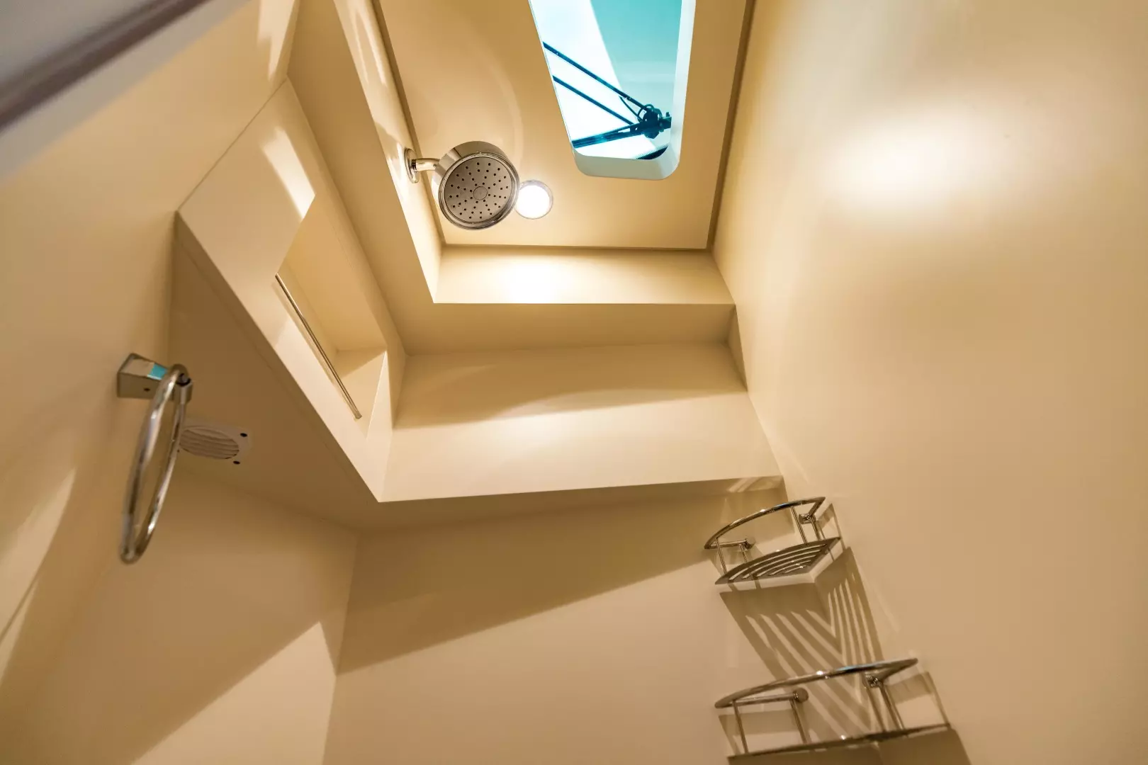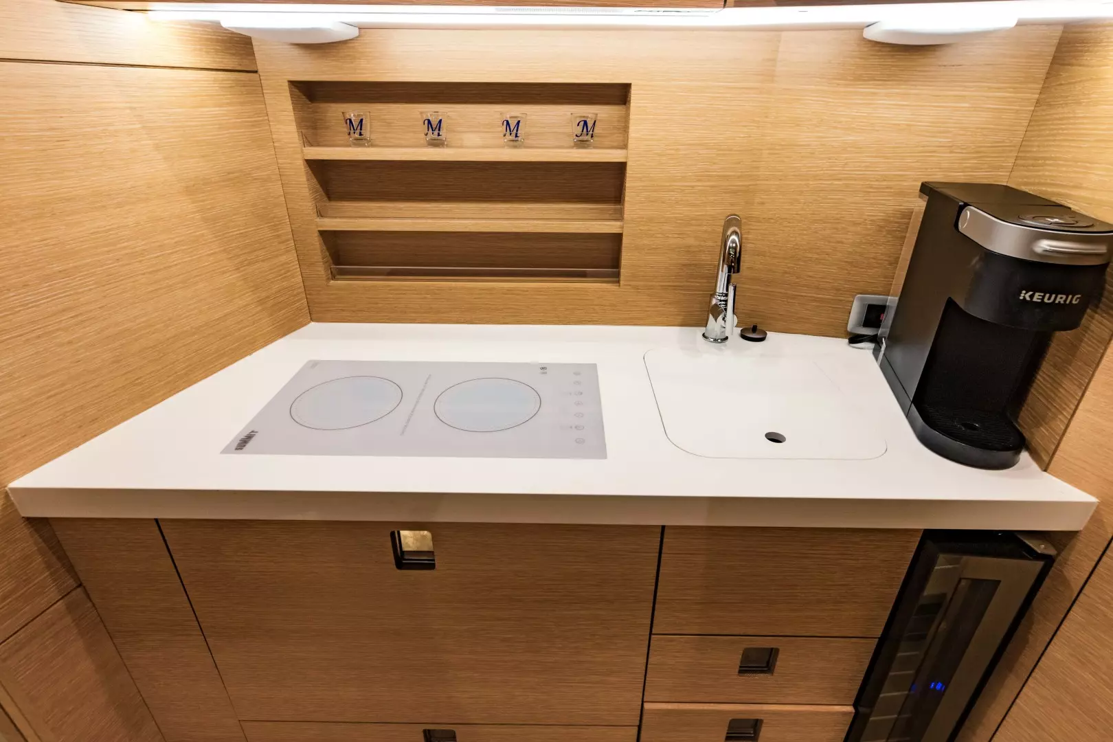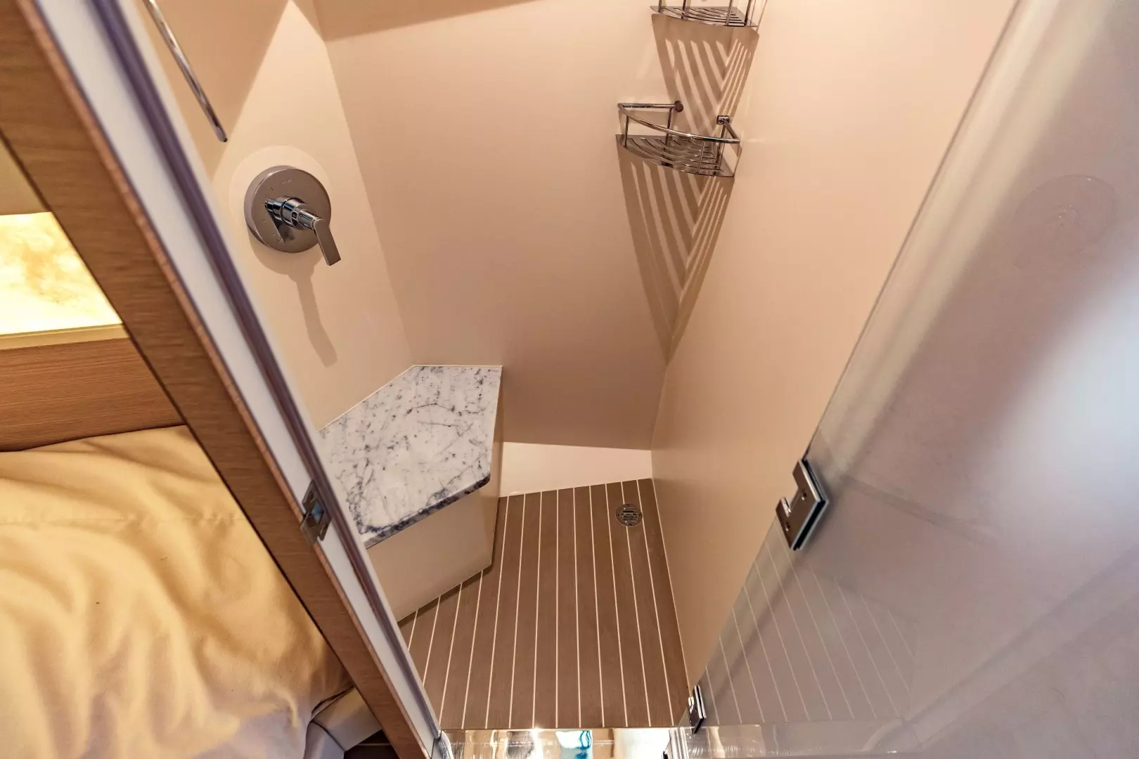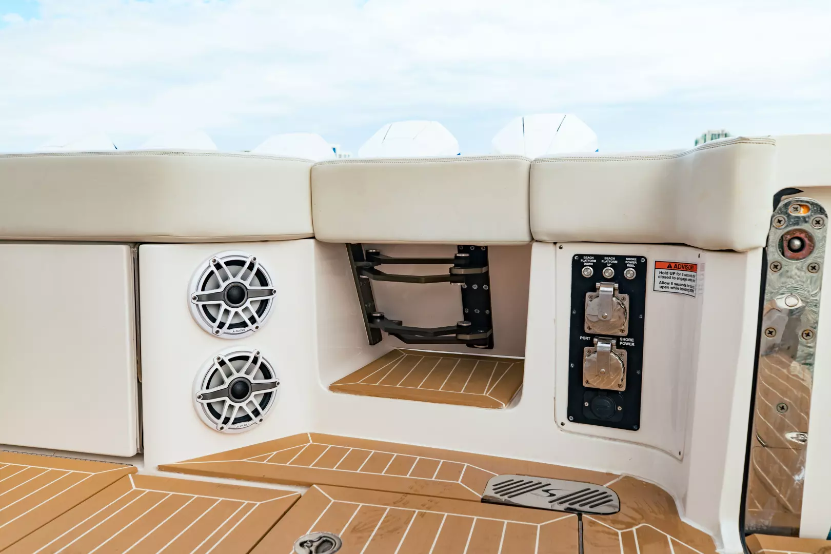 The appointments down below are unmatched in a model this size. You’ll feel like you’re stepping into a private jet, or a luxury home. Private master stateroom, convertible sofa-to-berth, private aft berth, enclosed separate shower, enclosed separate head, galley and hanging closet...and plenty of other hidden storage.