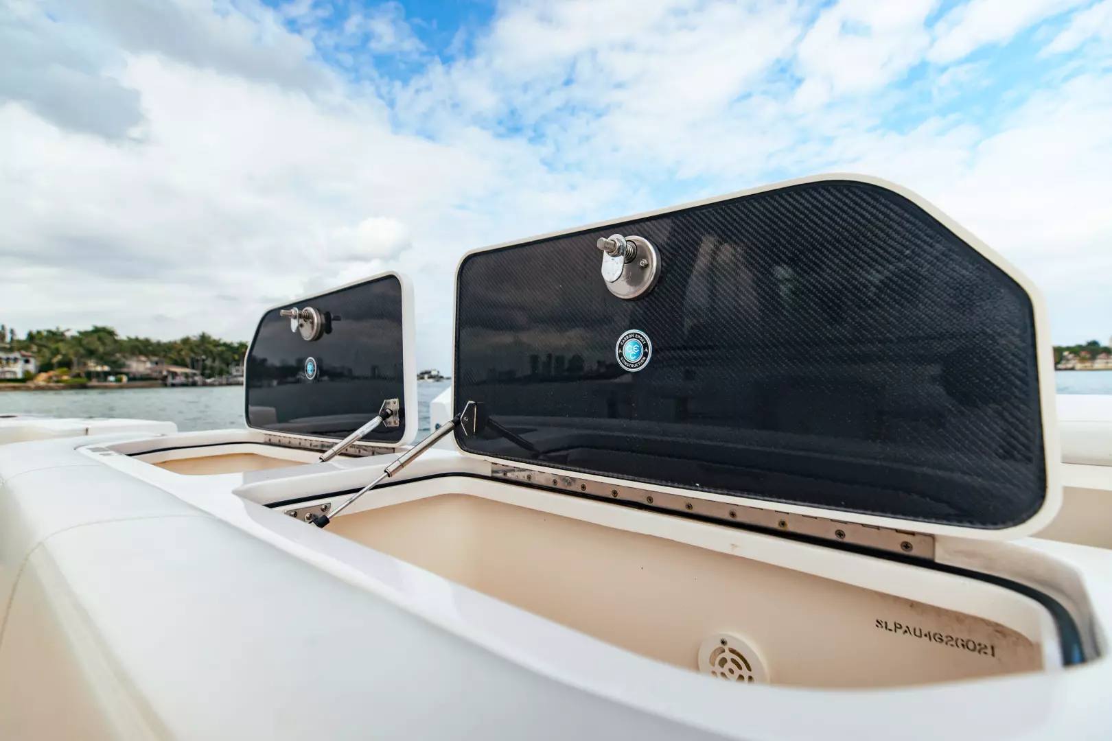 - Under Seat Storage Area Stbd Side for Dive Tanks, Gear and/or Survival Raft