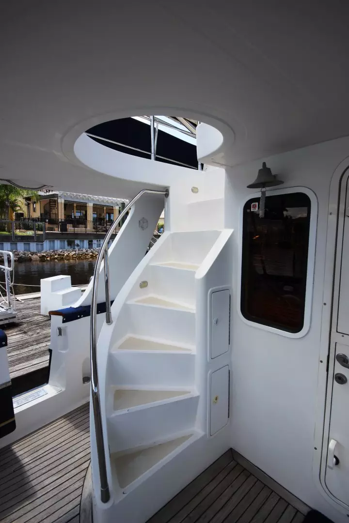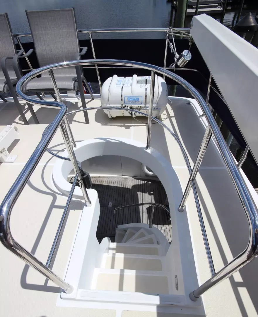starboard we head up the curved stairs that lead to the pilothouse. Now in the