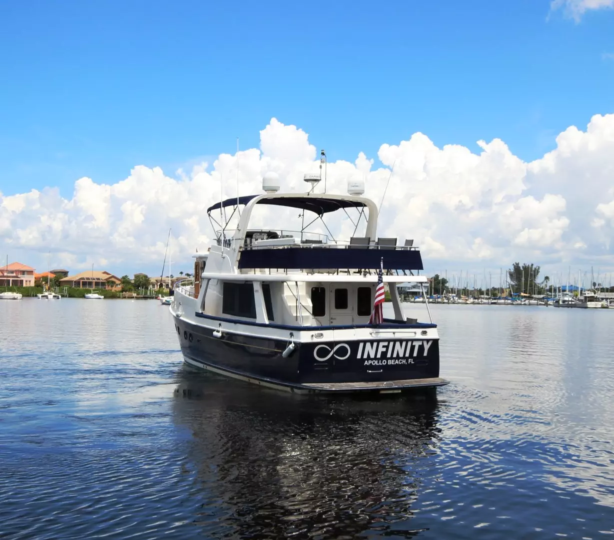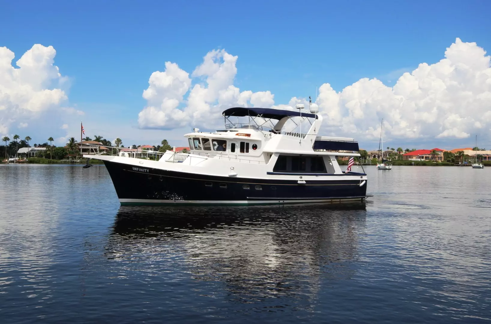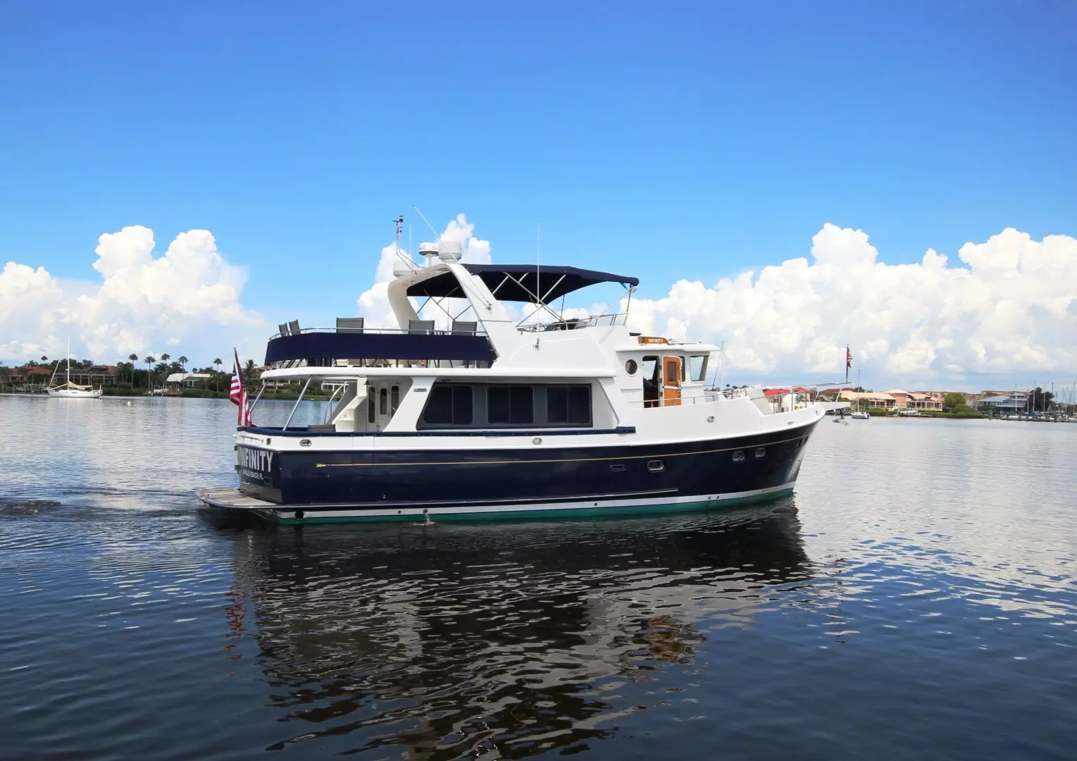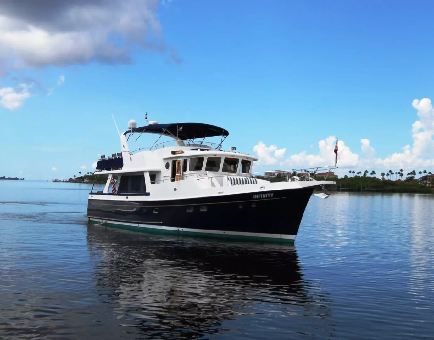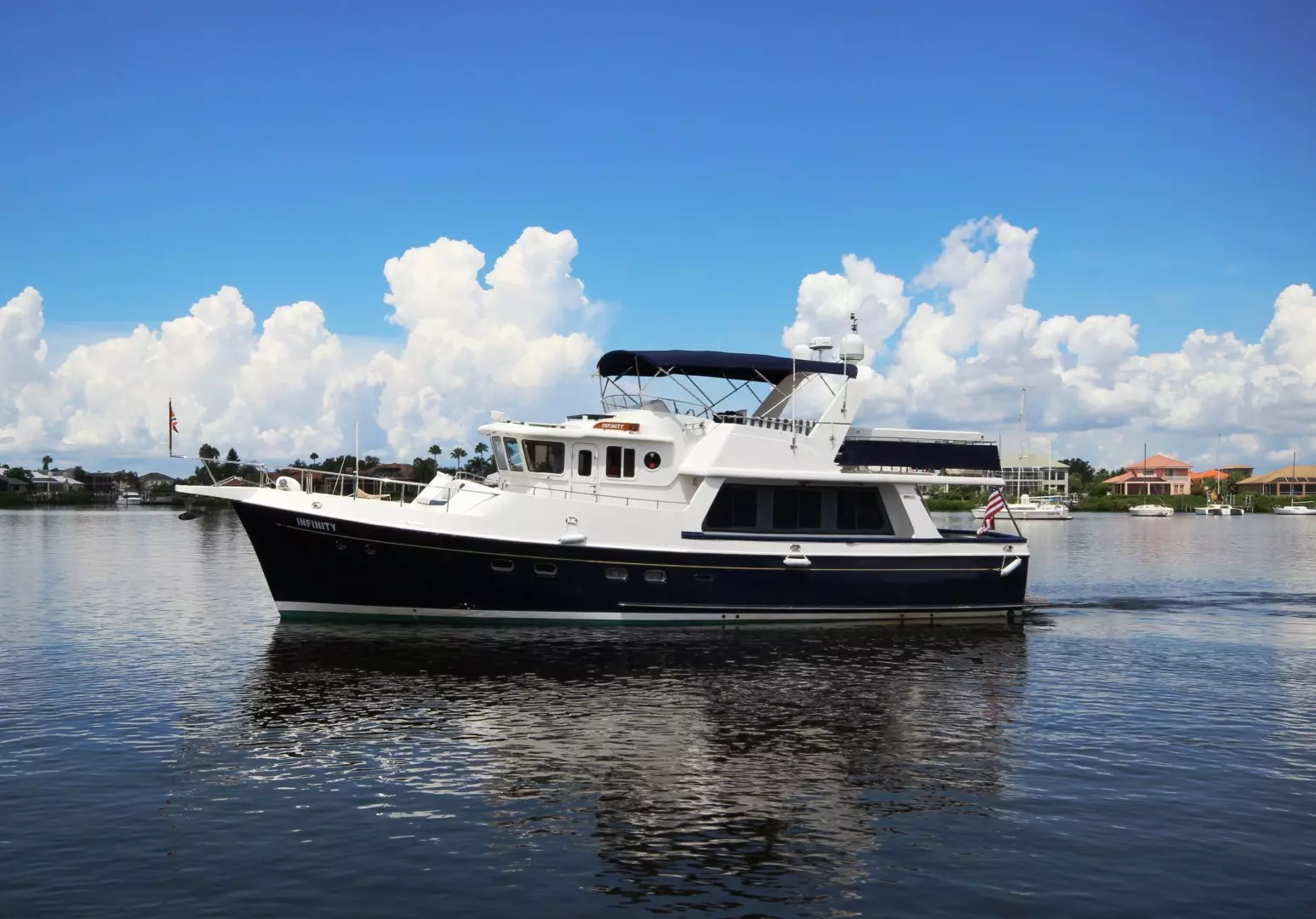 2003 53' Selene Ocean Trawler “Infinity” is a three stateroom pilothouse trawler. This Selene 53 is the most popular model and best-selling of the Selene line of Ocean Trawlers. Offers you flexibility for guests, excellent sea keeping abilities and the long-range cruising knowledgeable cruisers and Selene owners desire. The Selene quality craftsmanship is apparent throughout – showing off their excellent skills in top-notch joinery work, space planning, and storage. The Selene 53 models have taken owners wide and far, traveling some extreme distances. It all starts with an efficient and ocean capable hull. Take a look under a Selene and you will see what you should expect of excellent naval architecture – clean, smooth lines, a long keel for tracking and a large rudder for steering. There are no bulky protrusions to create cavitation issues for the propeller, the lines are clean from bow to stern, and the long keep and skeg-hung rudder protect the propeller. This vessel has just had a full engine and generator services and has an extensive list of recent updates and modifications. She is ready to go! Call for your easy showing in Tampa Bay, FL, you will not be disappointed!