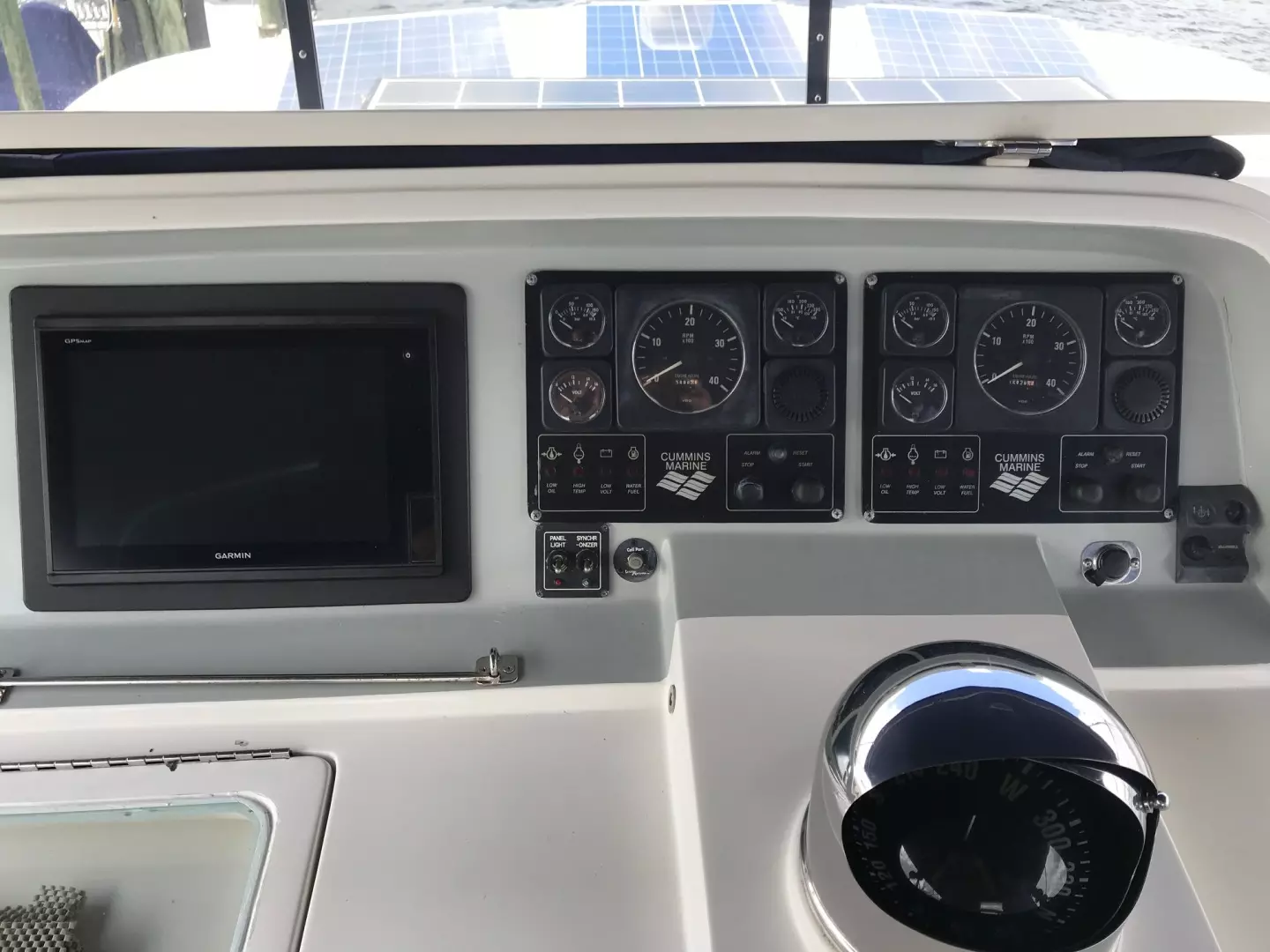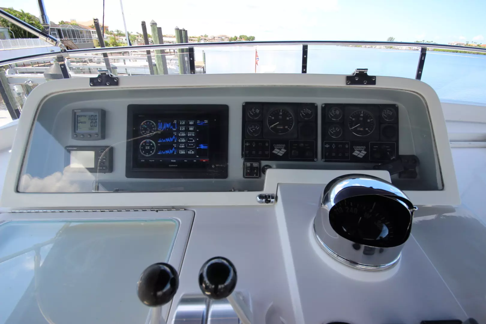 pilothouse, looking forward from the centerline helm seat you have easy reach